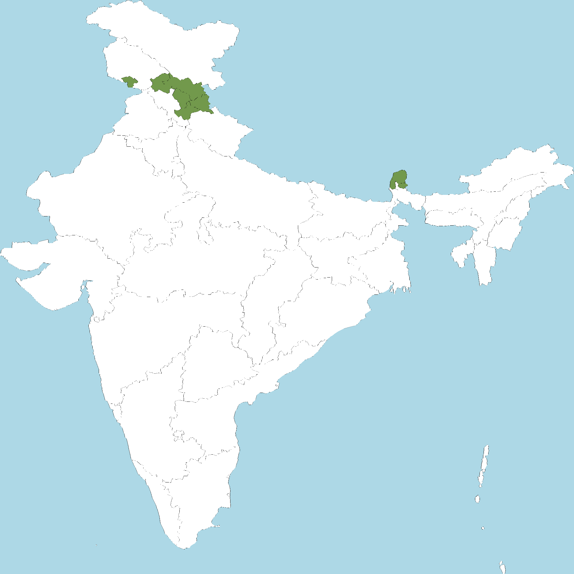 • Himachal Pradesh : Chamba district, Kinnaur district, Kullu district, Lahaul and Spiti district, Shimla district