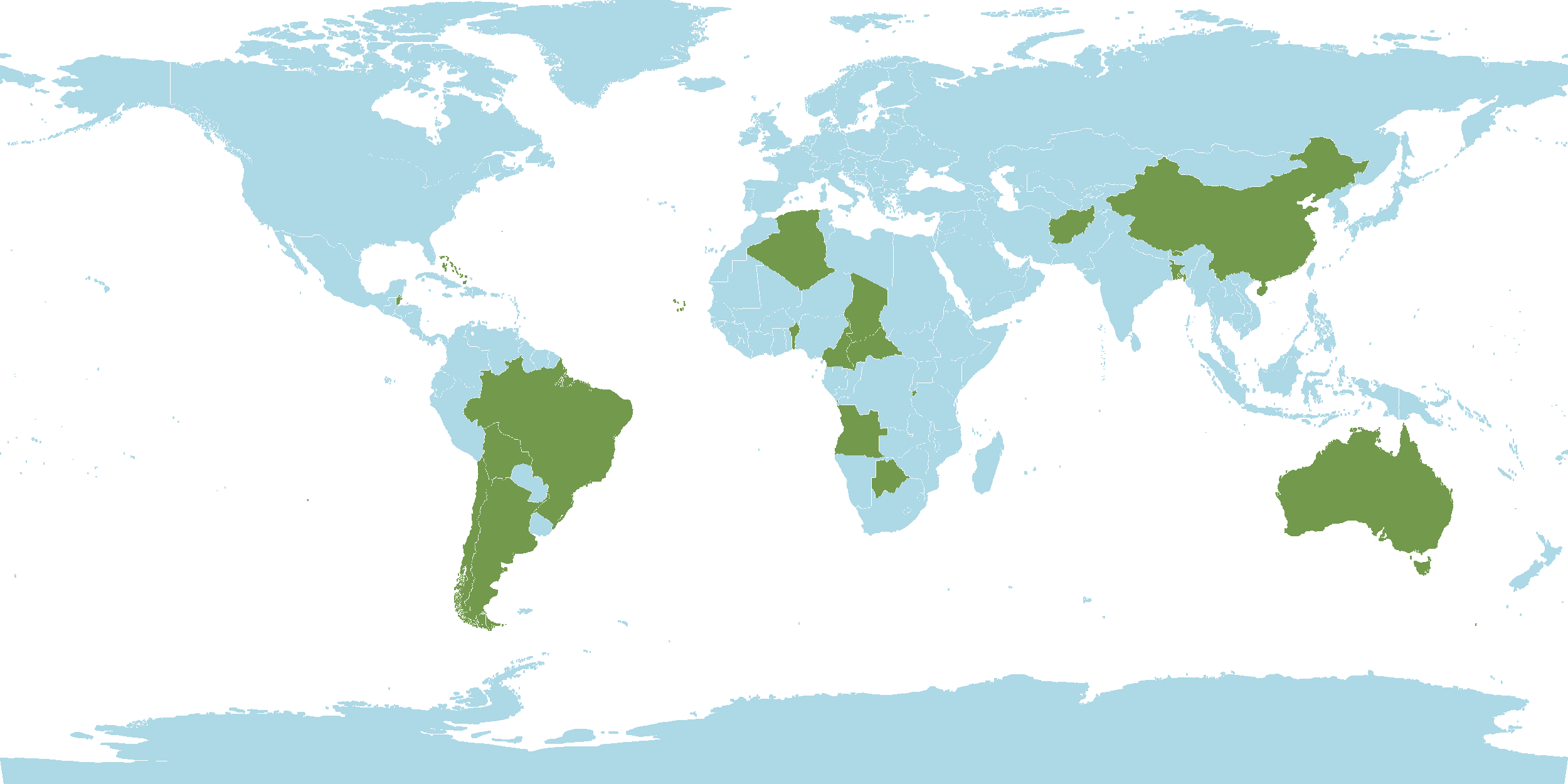 - Native : Afghanistan, Algeria, Angola, Argentina, Aruba, Australia, Bahamas, Bangladesh, Belize, Benin, Bhutan, Bolivia, Botswana, Brazil, Burkina, Burundi, Cameroon, Cape Provinces, Cape Verde, Cayman Islands, Central African Republic, Chad, Chile, China, Colombi