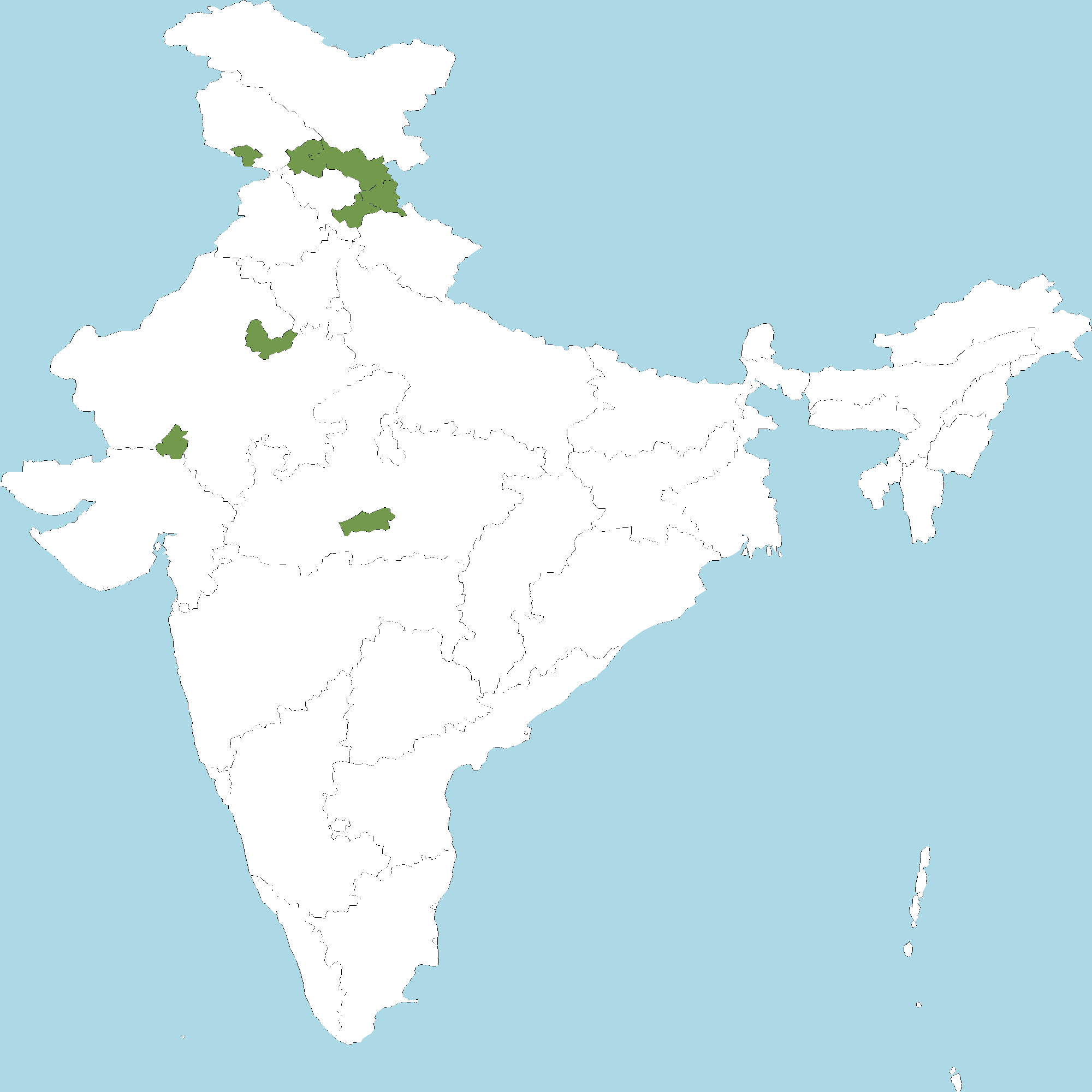 • Himachal Pradesh : Chamba district, Kinnaur district, Lahaul and Spiti district, Shimla district