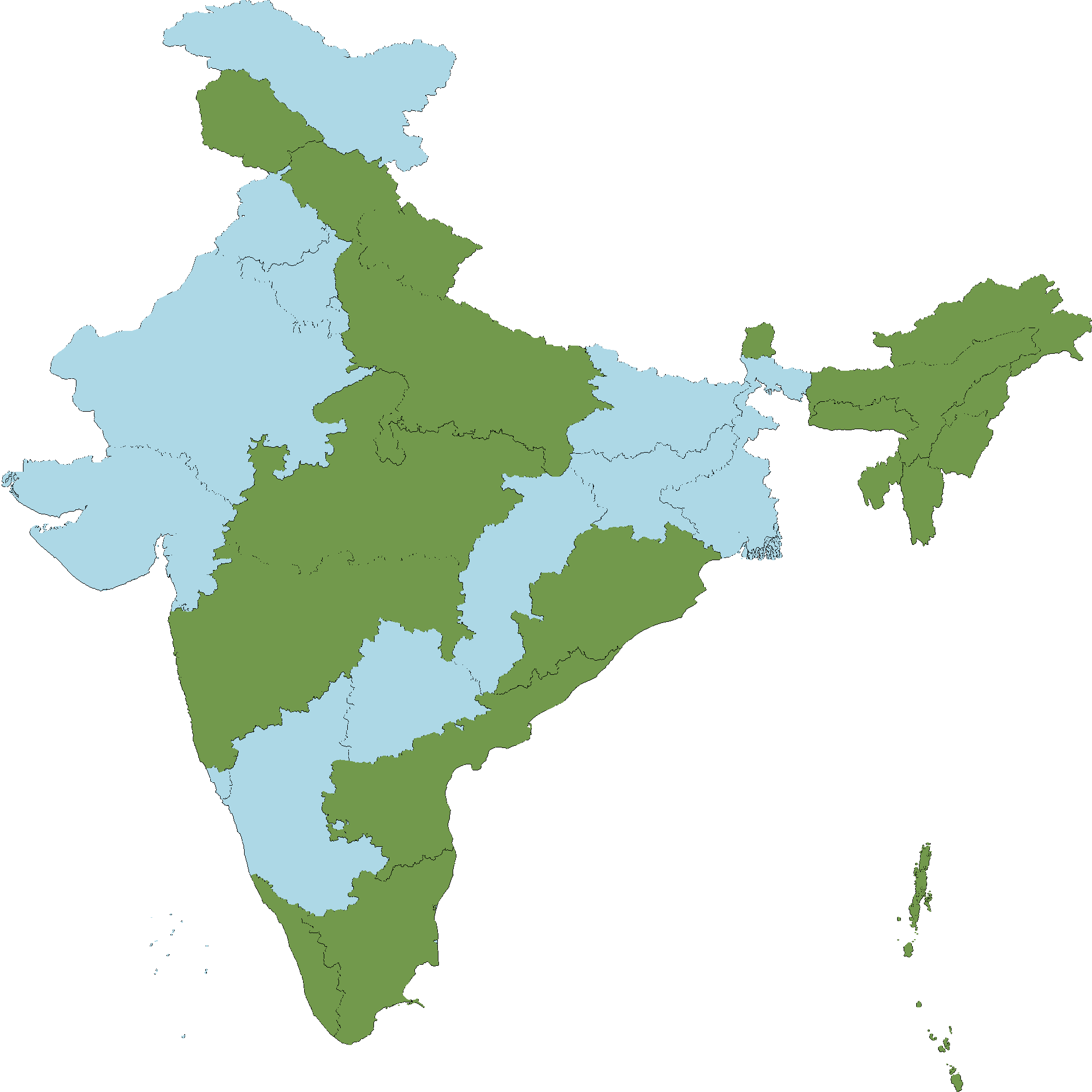 - Kerala : Kasaragod district, Kannur district, Wayanad district, Kozhikode district, Malappuram district, Palakkad district, Thrissur district, Ernakulam district, Idukki district, Kottayam district, Pathanamthitta district, Kollam district