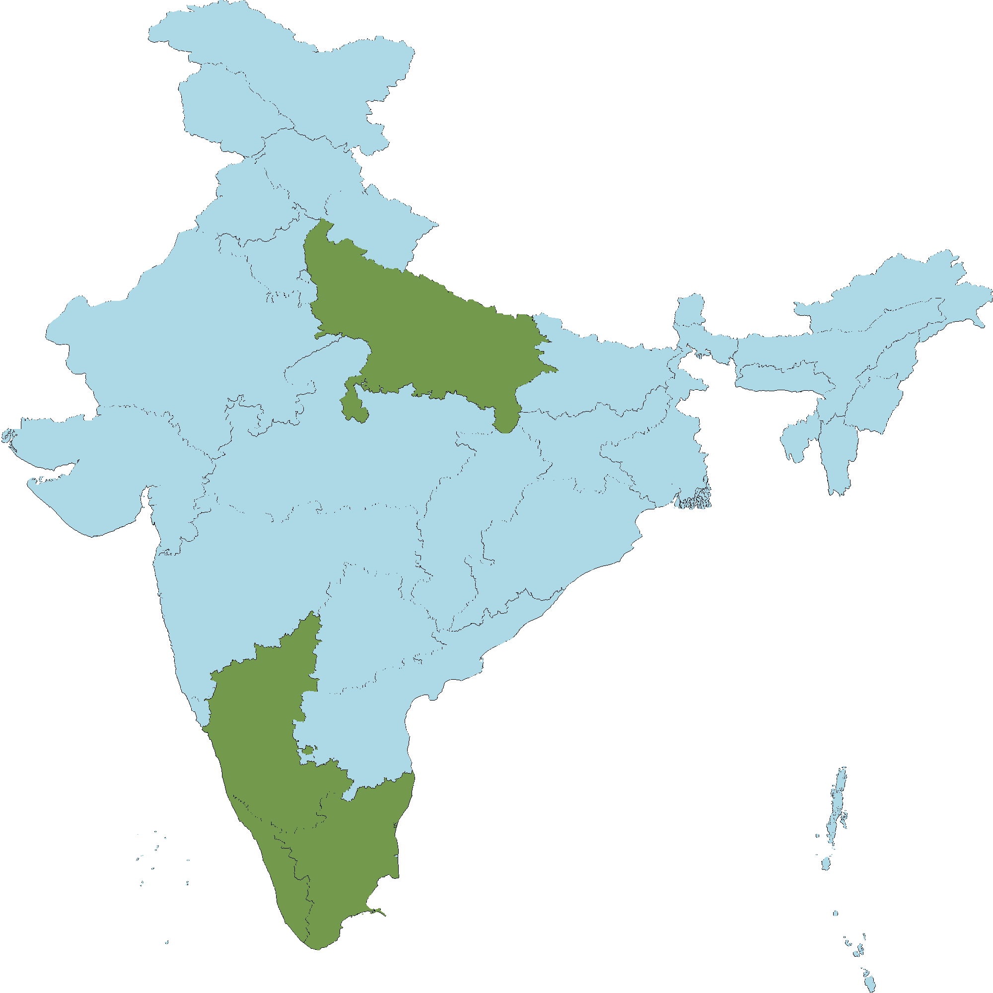 • Karnataka : Chikkamagaluru district, Dakshina Kannada district, Hassan district, Kodagu (Coorg) district, Shivamogga district, Uttara Kannada district