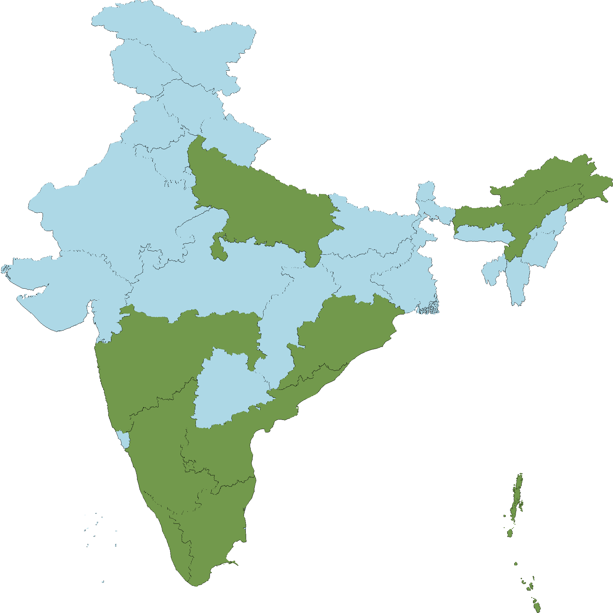 - Andhra Pradesh : Guntur district, East Godavari district, West Godavari district, Vishakapatnam district