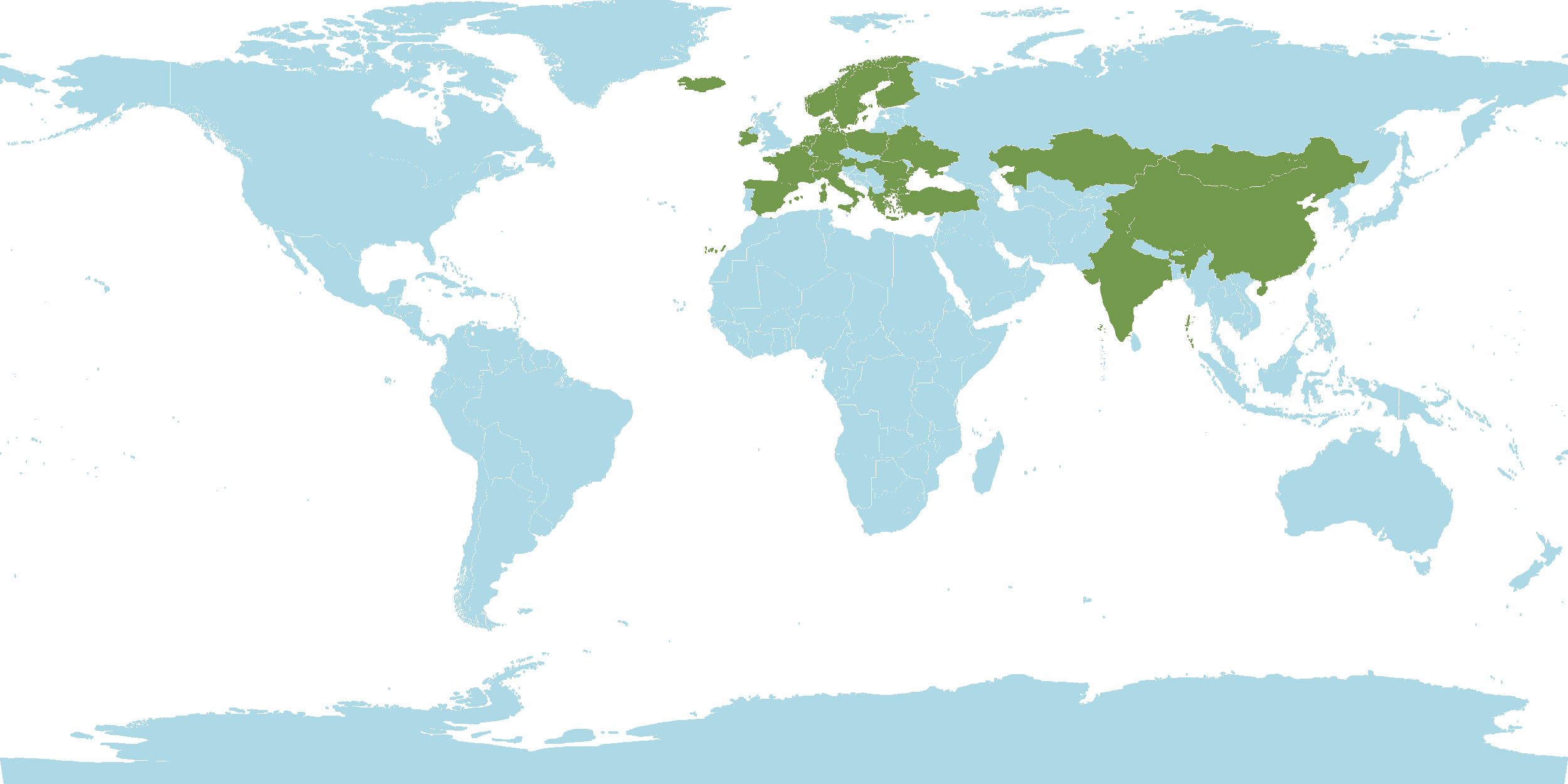 - Native : Albania, Altay, Amur, Austria, Baltic States, Belarus, Belgium, Bulgaria, Central European Russia, China, Chita, Czechoslovakia, Denmark, East European Russia, Finland, France, Føroyar, Germany, Great Britain, Greece, Greenland, Hungary, Iceland, India,