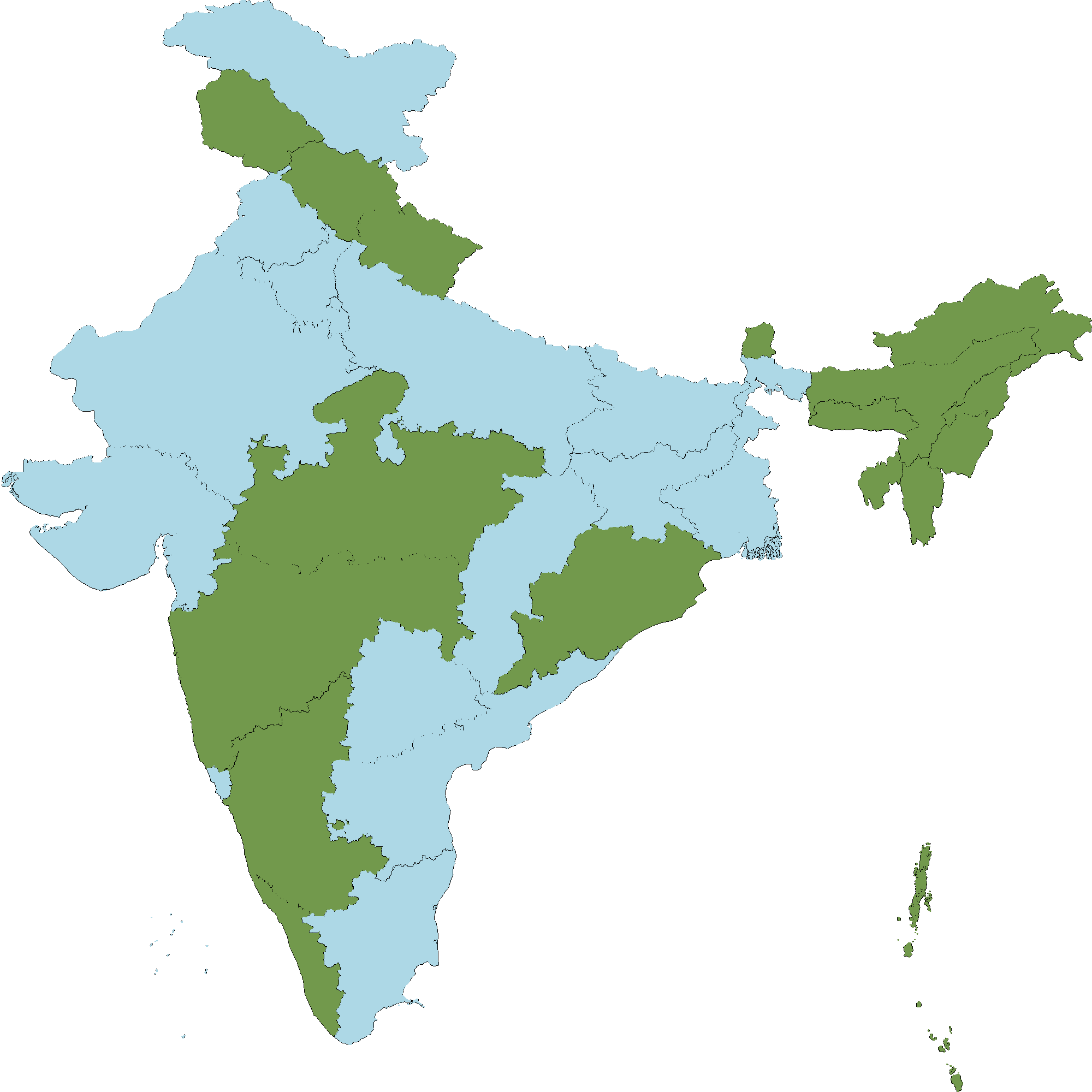 - Karnataka : Belagavi district, Davanagare district, Dharwad district, Hassan district, Kodagu (Coorg) district, Tumakuru district, Udupi district, Uttara Kannada district, Dakshina Kannada district