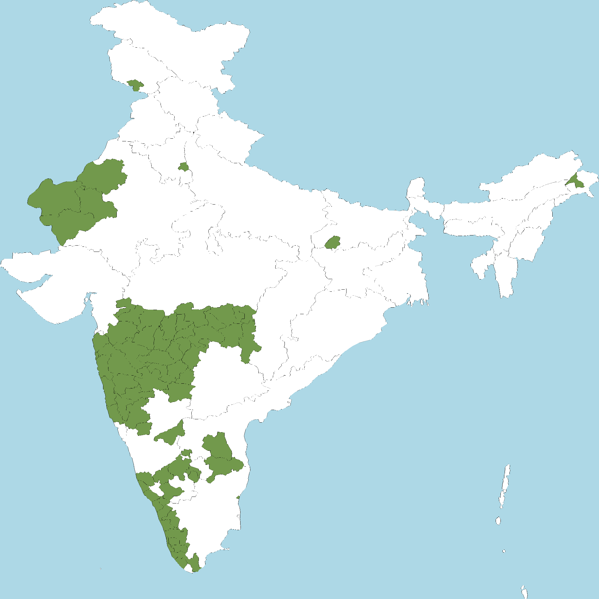 - Kerala : All districts of Kerala
