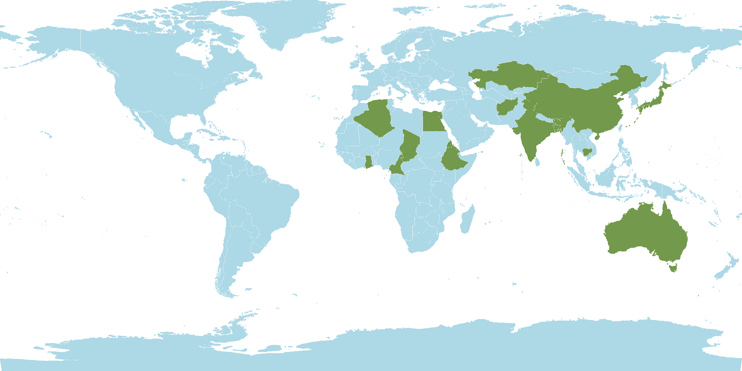 - Native : Afghanistan, Algeria, Andaman and Nicobar Islands, Australia, Bangladesh, Bhutan, Bismarck Archipelago, Burkina, Cambodia, Cameroon, Central African Repu, Chad, China, Egypt, Eritrea, Ethiopia, Ghana, Gulf States, Hainan, India, Japan, Jawa, Kazakhstan, K