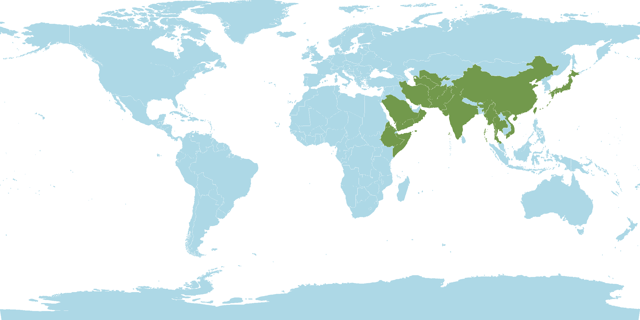 - Native : Afghanistan, China, Eritrea, Ethiopia, Gulf States, India, Iran, Japan, Korea, Malaya, Myanmar, Nansei-shoto, Oman, Pakistan, Saudi Arabia, Somalia, Tadzhikistan, Taiwan, Thailand, Turkmenistan, Uzbekistan, Vietnam, Yemen