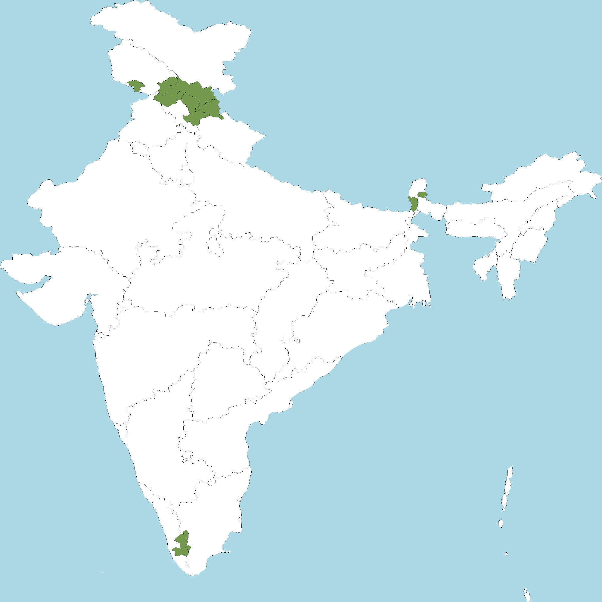 - Himachal Pradesh : Chamba district, Kangra district, Kinnaur district, Kullu district, Lahaul and Spiti district, Shimla district