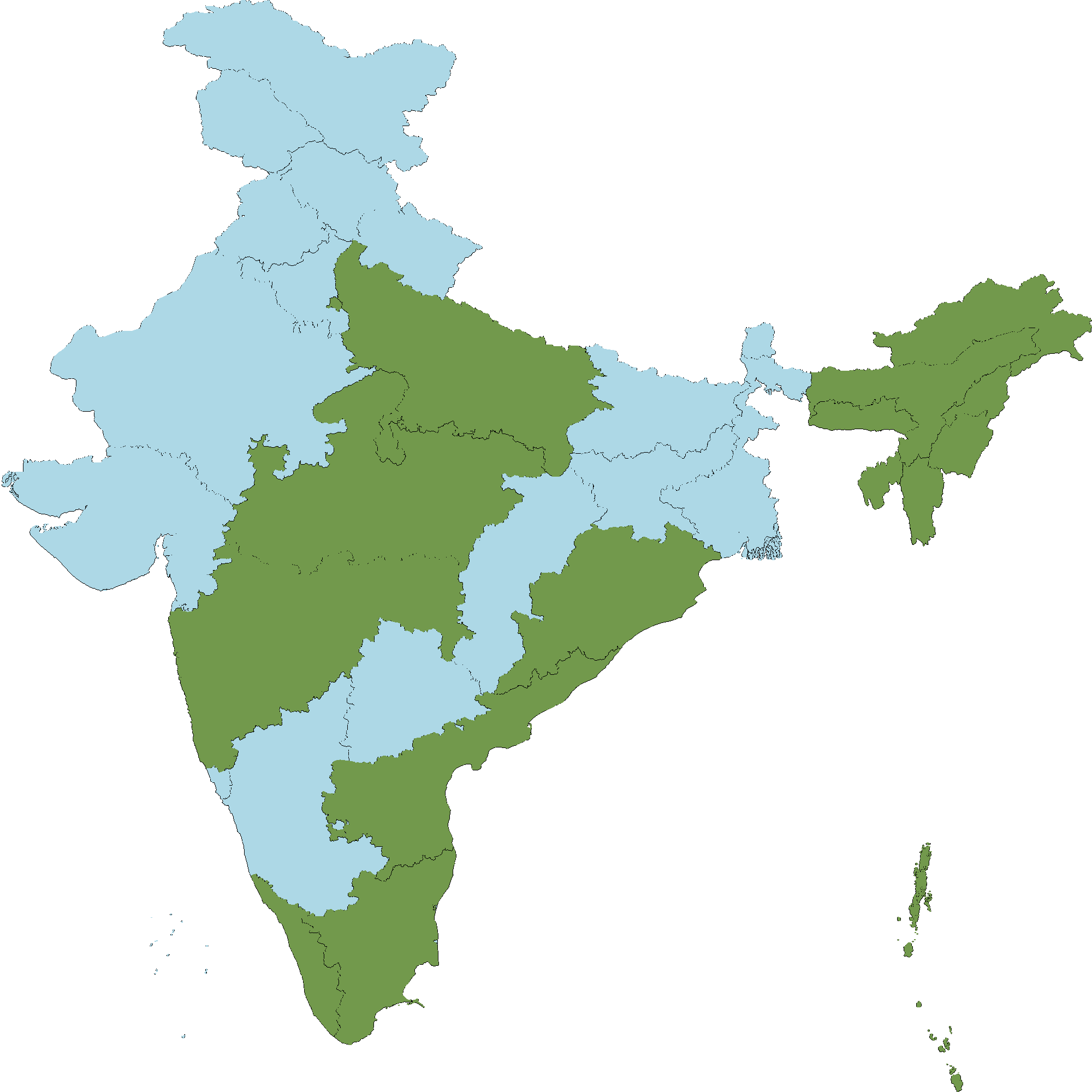 - Kerala : Kannur district, Wayanad district, Palakkad district, Idukki district