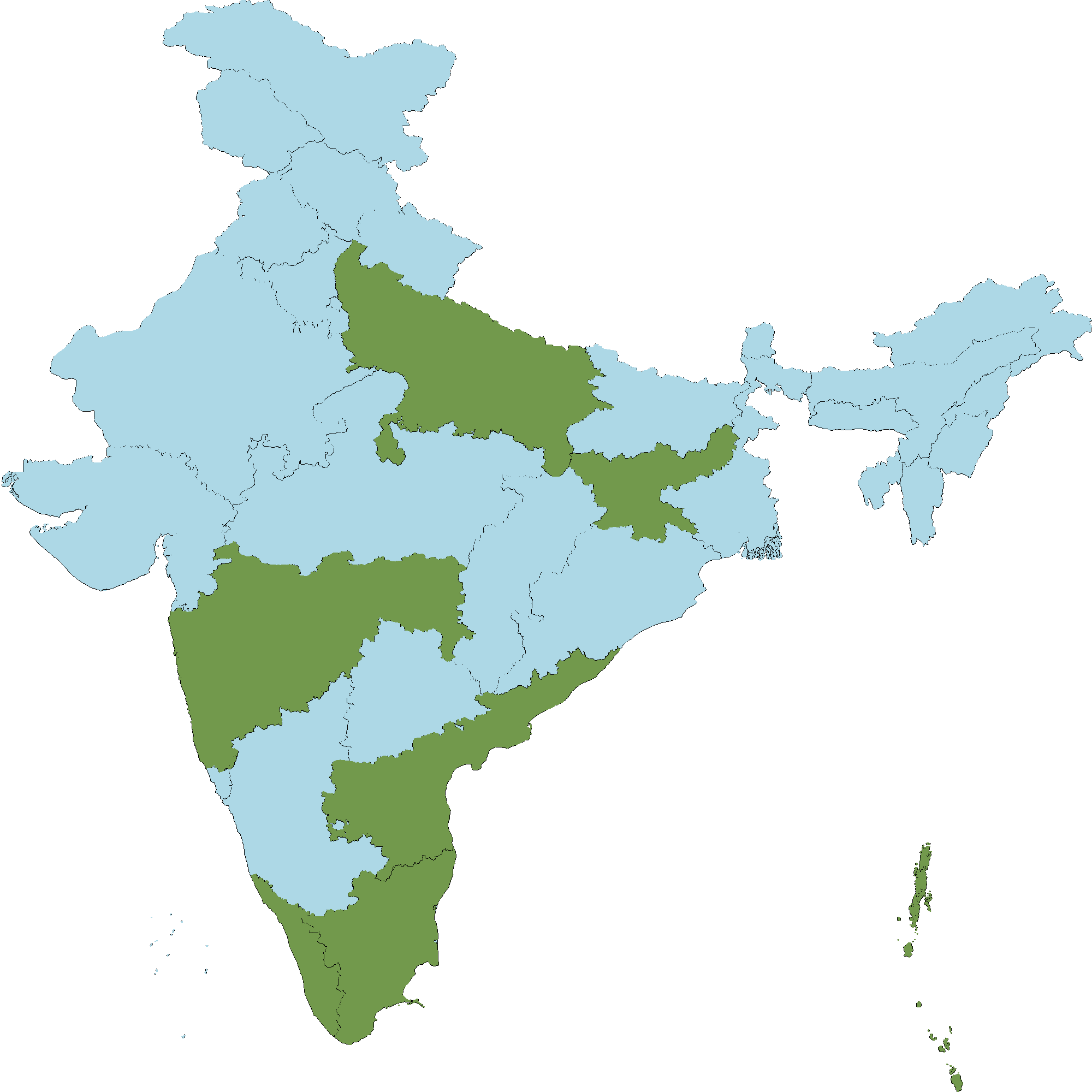 - Andhra Pradesh : Guntur district, Kurnool district, Prakasam district, Anantapur district, Y.S.R. Kadapa district, West Godavari district, Srikakulam district