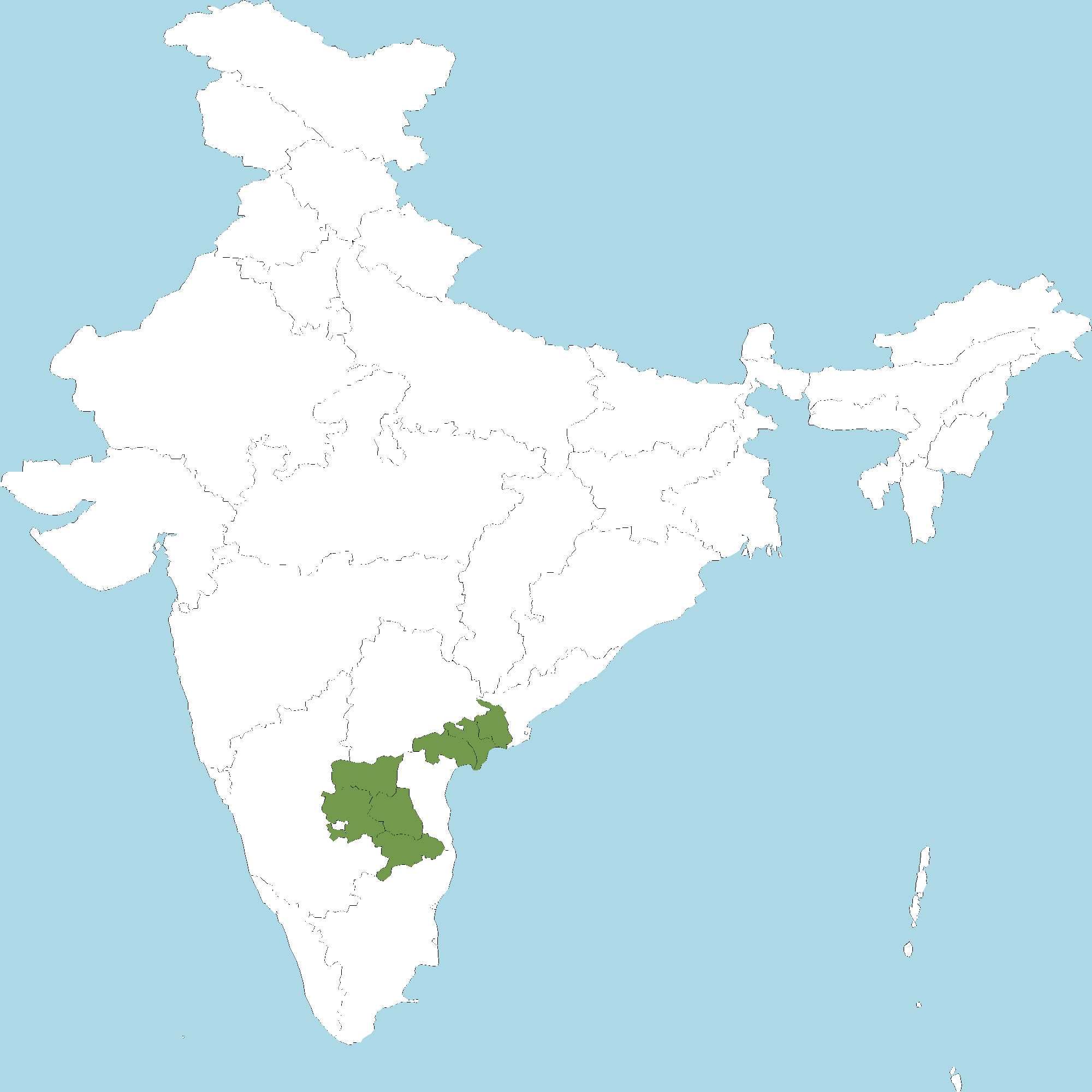 • Andhra Pradesh : Kurnool district, Anantapur district, Chittoor district, Guntur district, Y.S.R. Kadapa district, West Godavari district, Krishna district