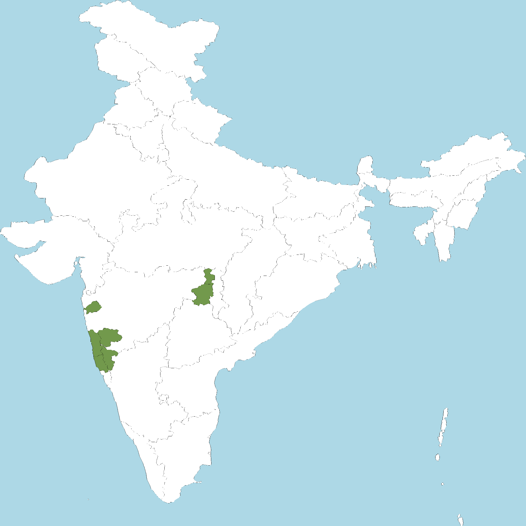 • Maharashtra : Bhandara district, Chandrapur district, Kolhapur district, Ratnagiri district, Satara district, Thane district, Sindhudurg district