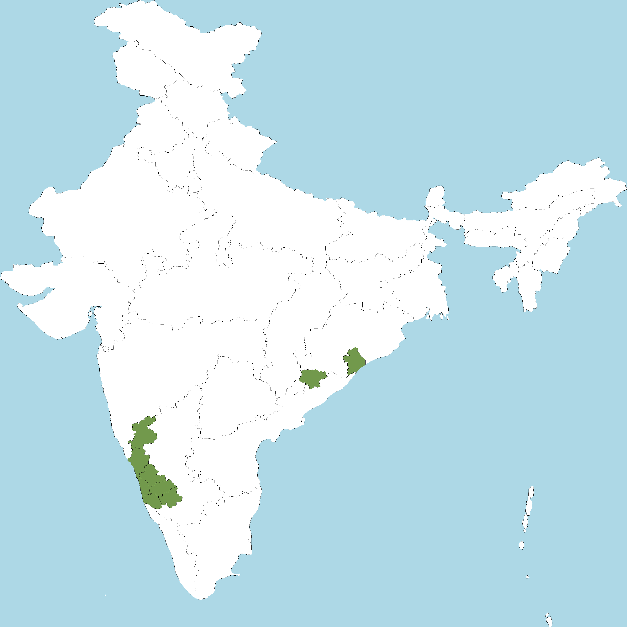• Karnataka : Belagavi district, Chikkamagaluru district, Dakshina Kannada district, Hassan district, Udupi district, Shivamogga district, Uttara Kannada district