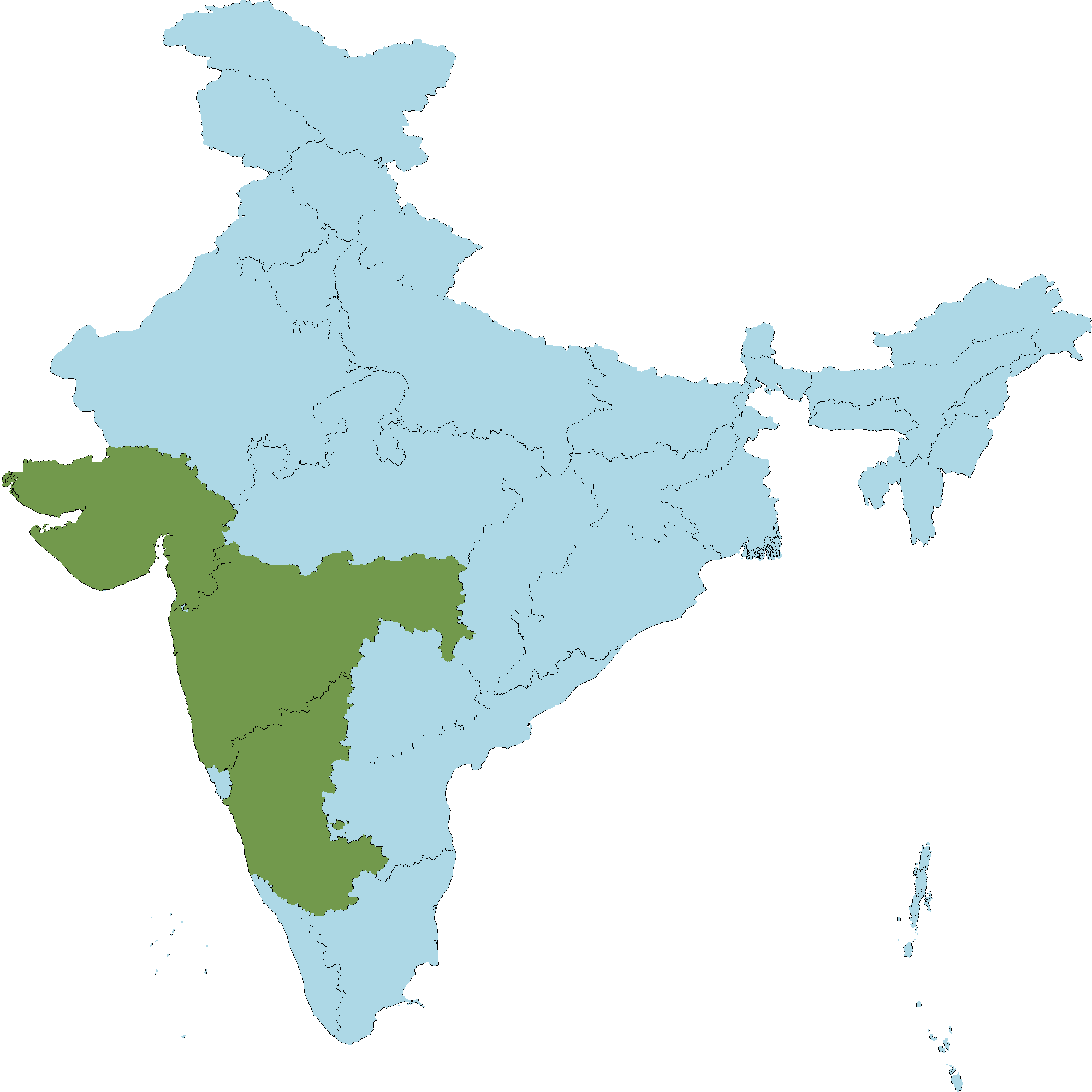 • Maharashtra : Ahmednagar district, Satara district, Nashik district, Pune district, Raigad district, Thane district