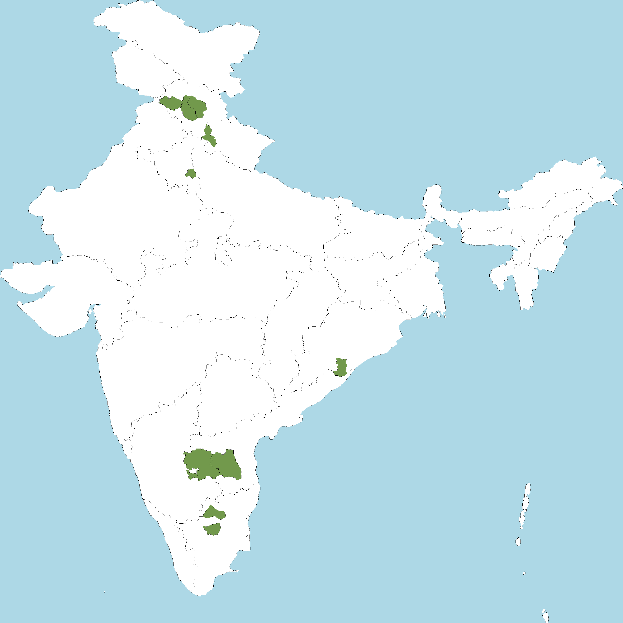 • Tamil Nadu : Tiruchirapalli district, Namakkal district, Dharmapuri district
