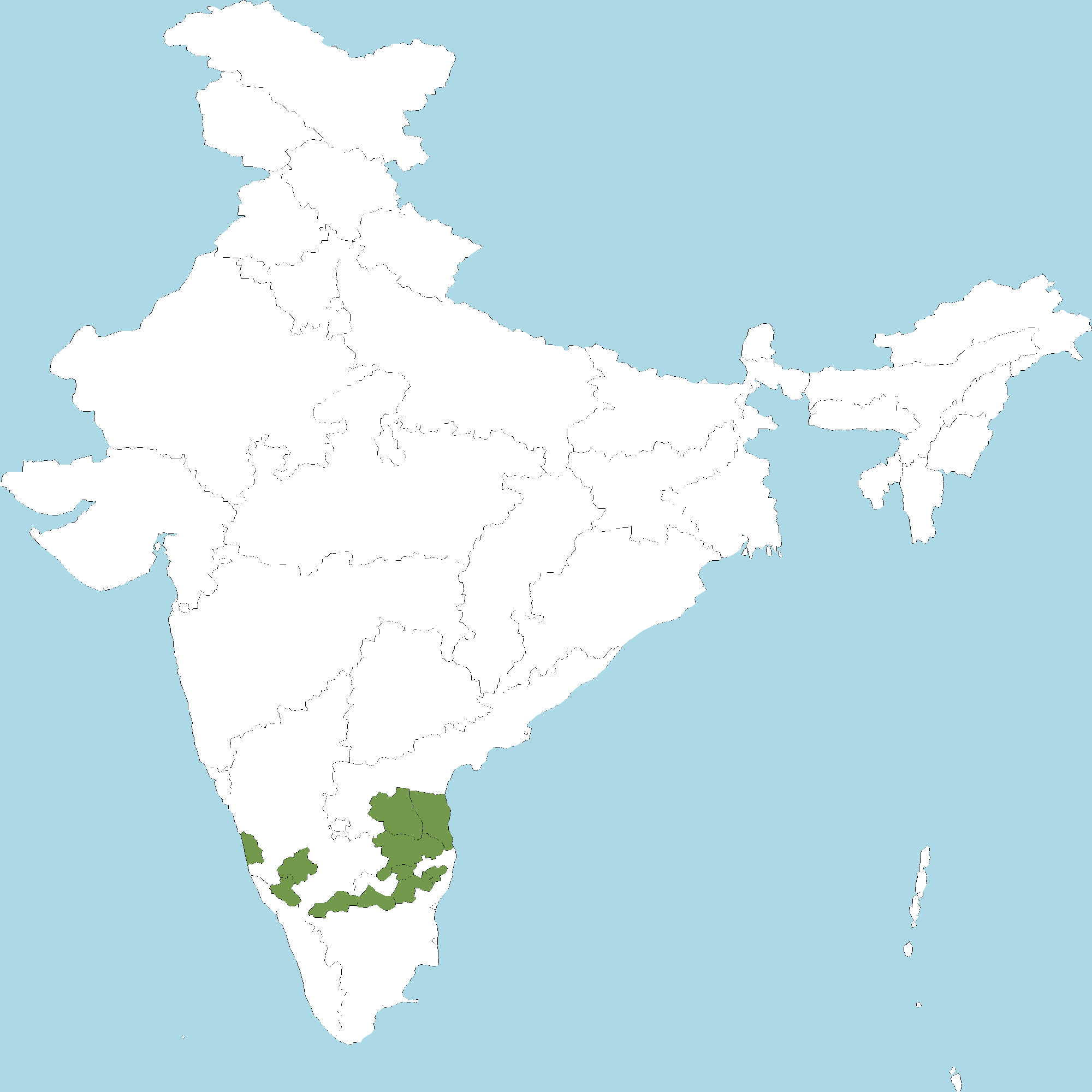 - Tamil Nadu : Kanchipuram district (Kancheepuram (Changalpattu-CGP) district), Tiruvannamalai district (Tiruvannamalai district), Vellore district, Dharmapuri Hills (Dharmapuri district), Kancheepuram (Changalpattu-CGP) district