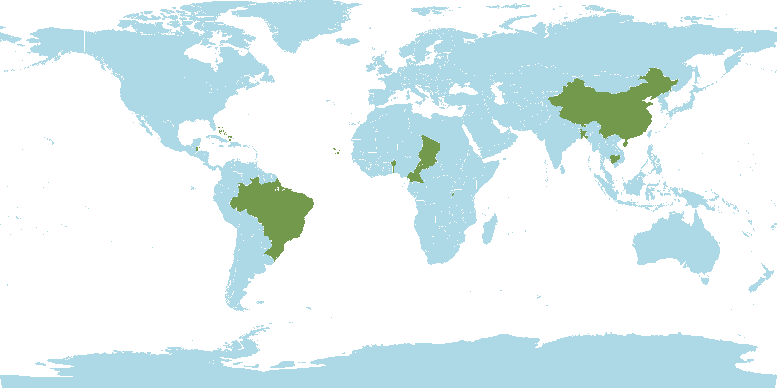 - Native : Andaman and Nicobar Islands, Aruba, Bahamas, Bangladesh, Belize, Benin, Bhutan, Brazil, Burkina, Burundi, Cambodia, Cameroon, Cape Verde, Central African Repu, Chad, China, Christmas Island, Cocos (Keeling) Islands, Congo, Cuba, Dominican Republic, El Sal