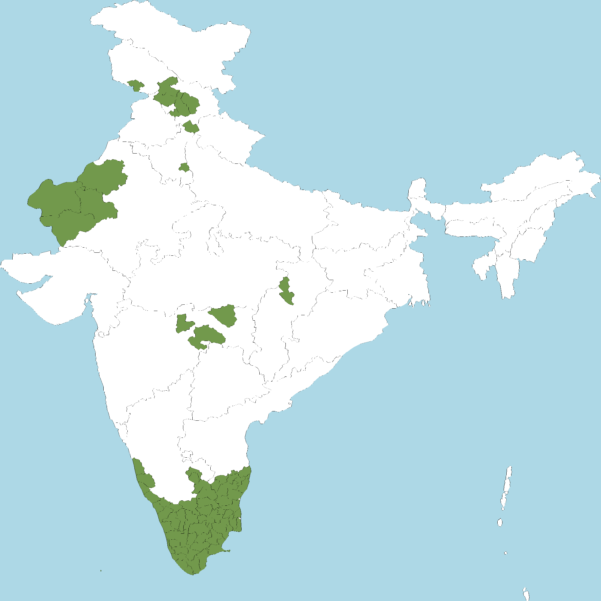 - Rajasthan : Jaisalmer district, Barmer district, Bikaner district, Jodhpur district