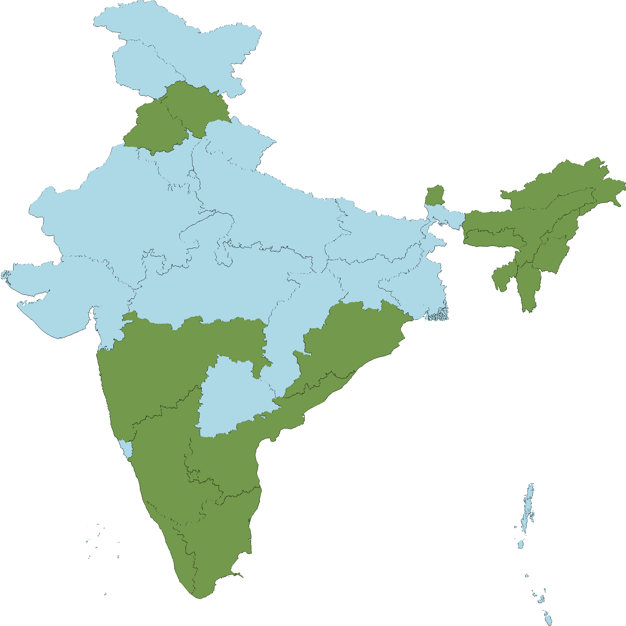- Kerala : Wayanad district, Kozhikode district, Malappuram district, Palakkad district, Thrissur district, Idukki district, Kottayam district, Kollam district, Thiruvananthapuram district