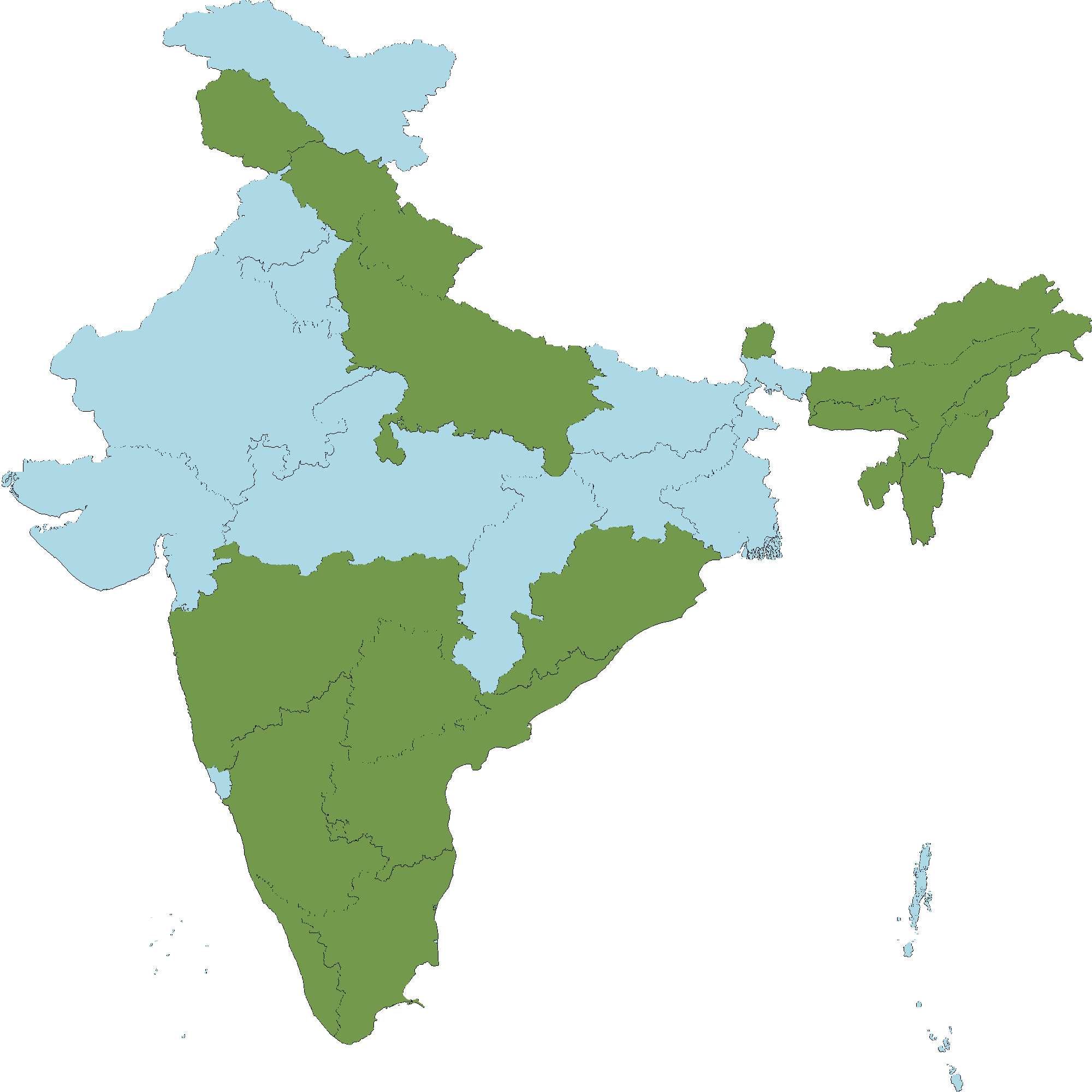 - Andhra Pradesh : Anantapur district, Chittoor district, Kadapa district, East Godavari district, Guntur district, Krishna district, Kurnool district, Nellore district, Prakasam district, Srikakulam district, Vishakapatnam district, Vizianagaram district, West Godavari district