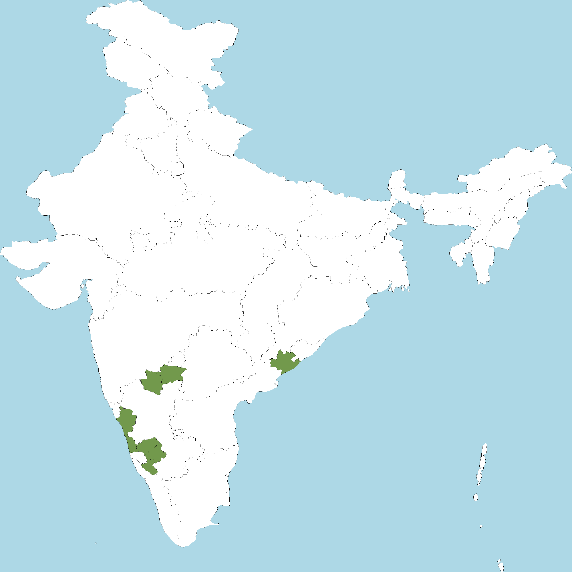 • Karnataka : Vijayapura (Bijapur) district, Chikkamagaluru district, Kalaburagi (Gulbarga) district, Hassan district, Kodagu (Coorg) district, Udupi district, Uttara Kannada district