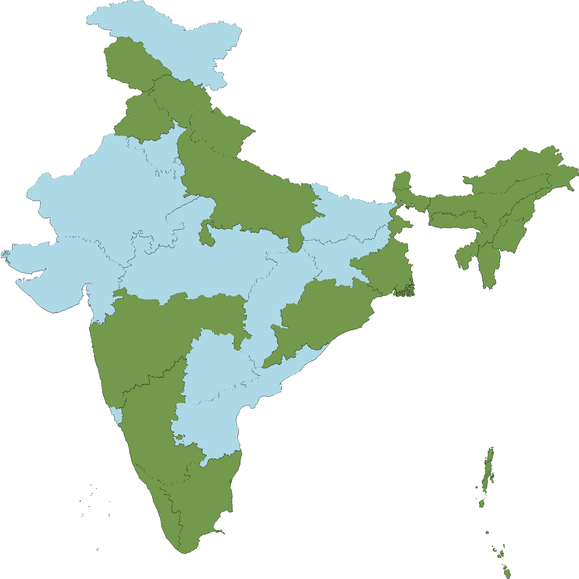 - West Bengal : Bankura, Birbhum, Burdwan, Darjeeling, Hooghly, Howrah, Jalpaiguri, Midnapur, 24-Parganas