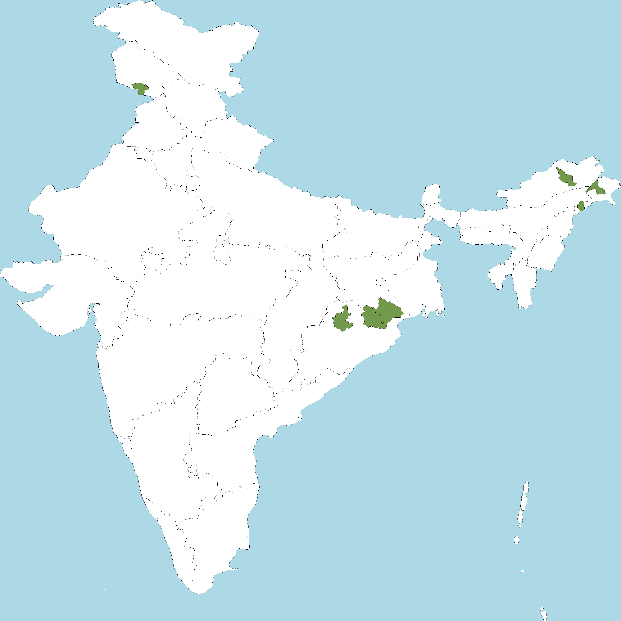 • Odisha : Mayurbhanj district, Sambalpur district, Kendujhar district