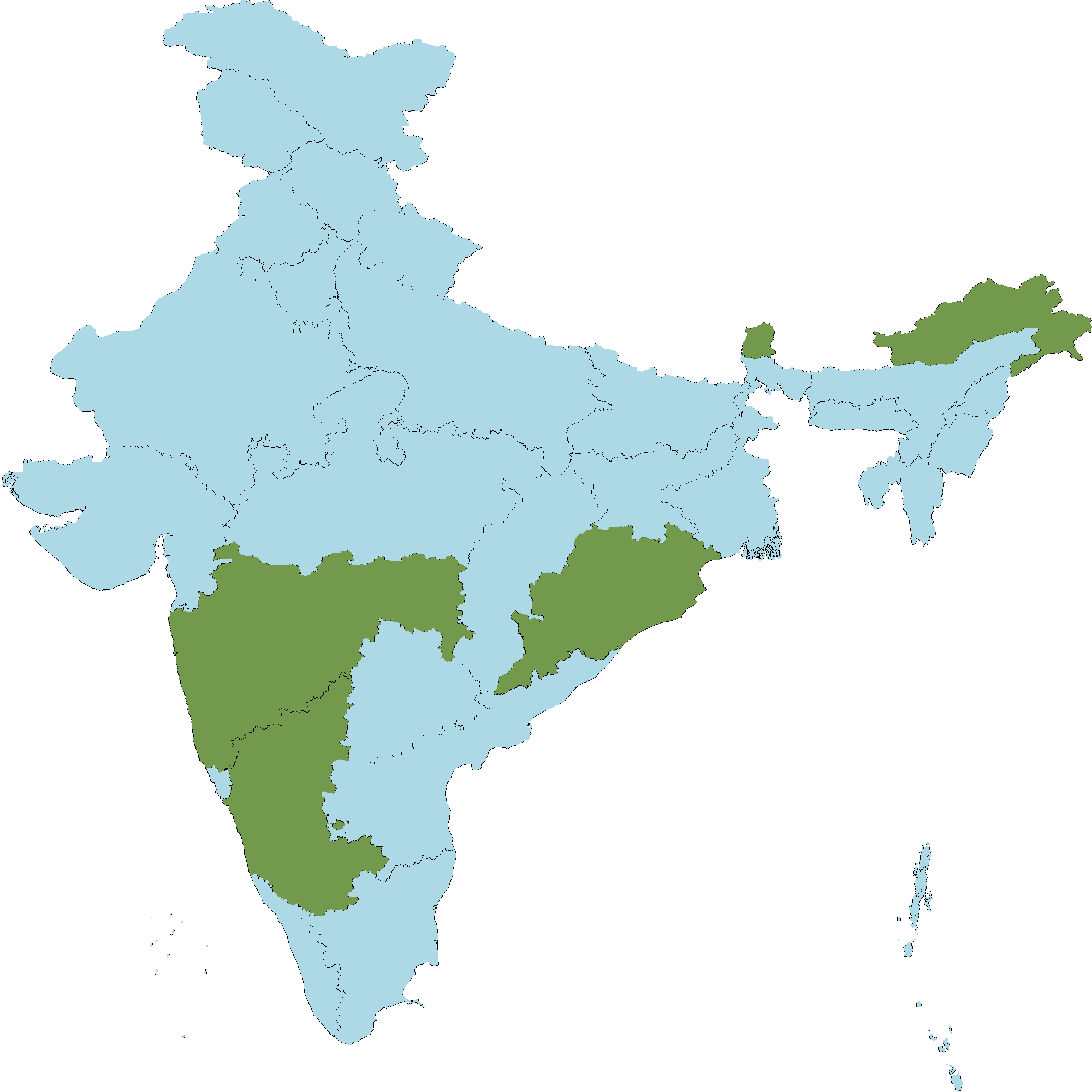 • Karnataka : Chikkamagaluru district, Dakshina Kannada district, Hassan district, Udupi district