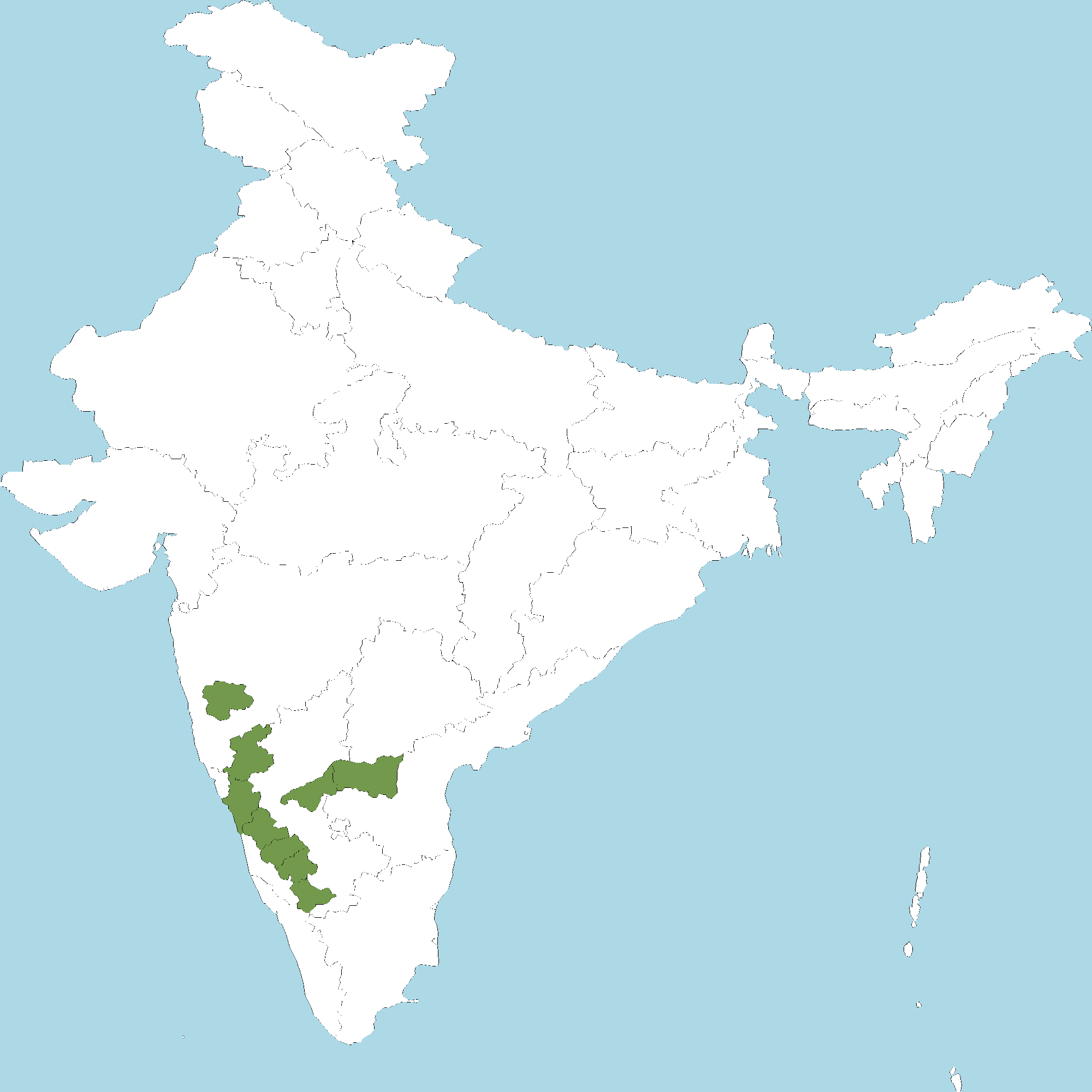 • Karnataka : Belagavi district, Ballari district, Chikkamagaluru district, Hassan district, Mysuru district, Shivamogga district, Uttara Kannada district