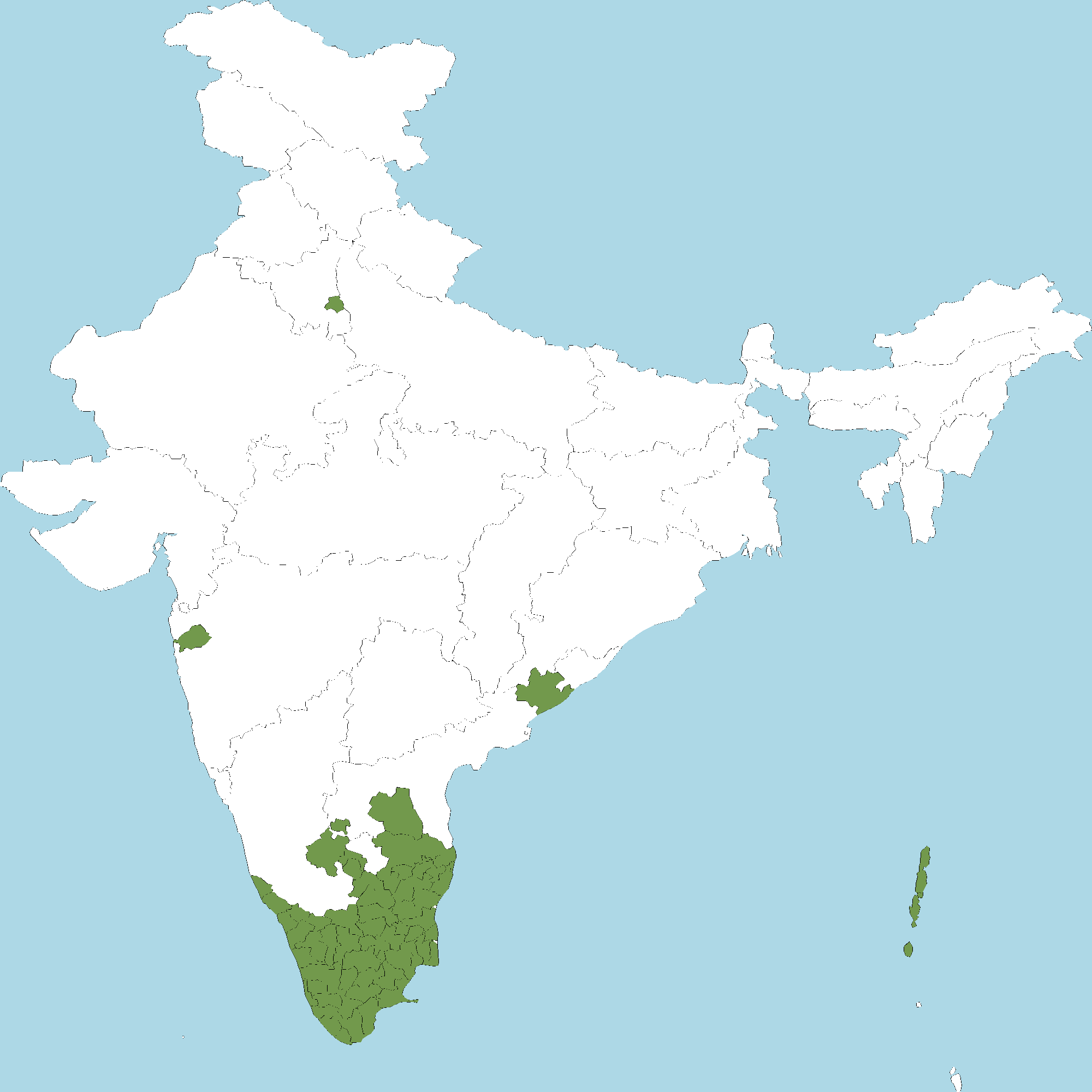 - Kerala : All districts of Kerala
