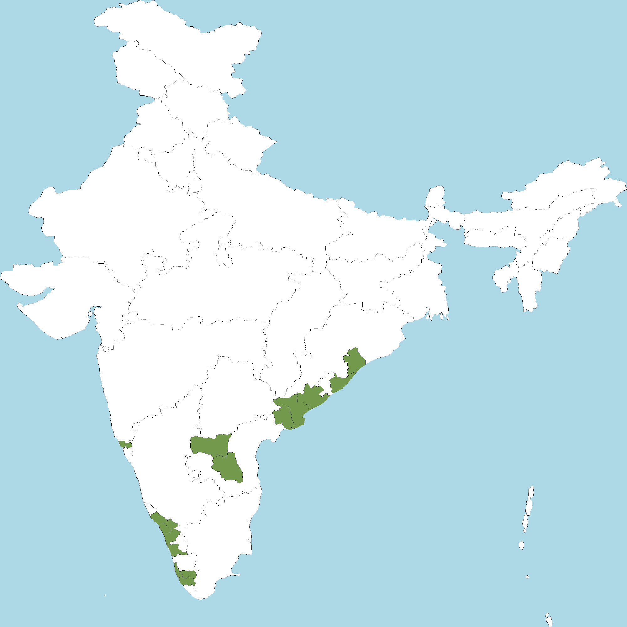 - Andhra Pradesh : Visakhapatnam district, East Godavari district, West Godavari district, Srikakulam district, Kurnool district, Y.S.R. Kadapa district