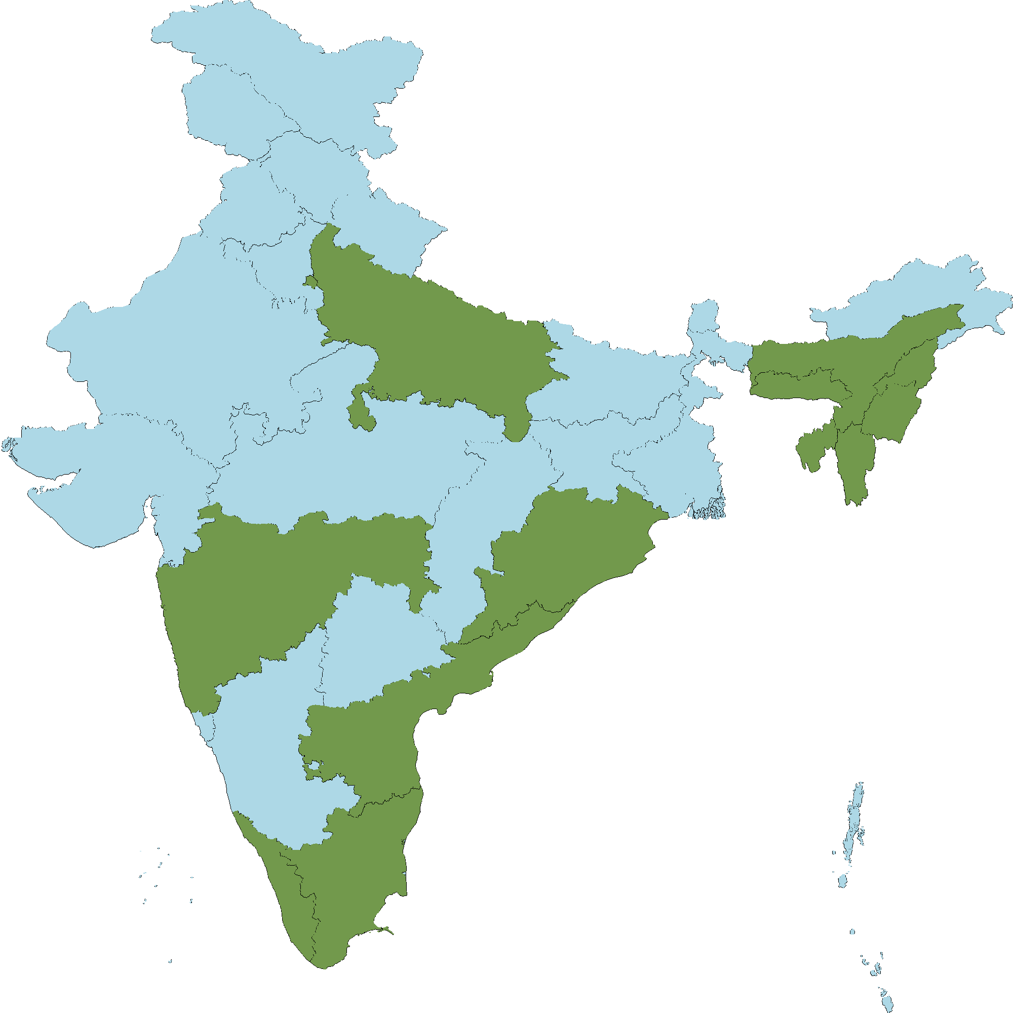- Tamil Nadu : Kanchipuram (Changalpattu-CGP) district, Coimbatore district, Madurai district, Ramanathapuram district, Tiruchirapalli district, Tirunelveli district, Dharmapuri district, Salem district, Villipuram district, Cuddalore district