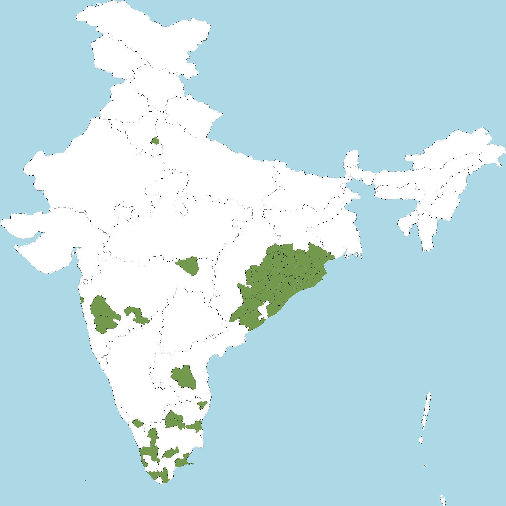- Andhra Pradesh : Visakhapatnam district, Srikakulam district, Y.S.R. Kadapa district