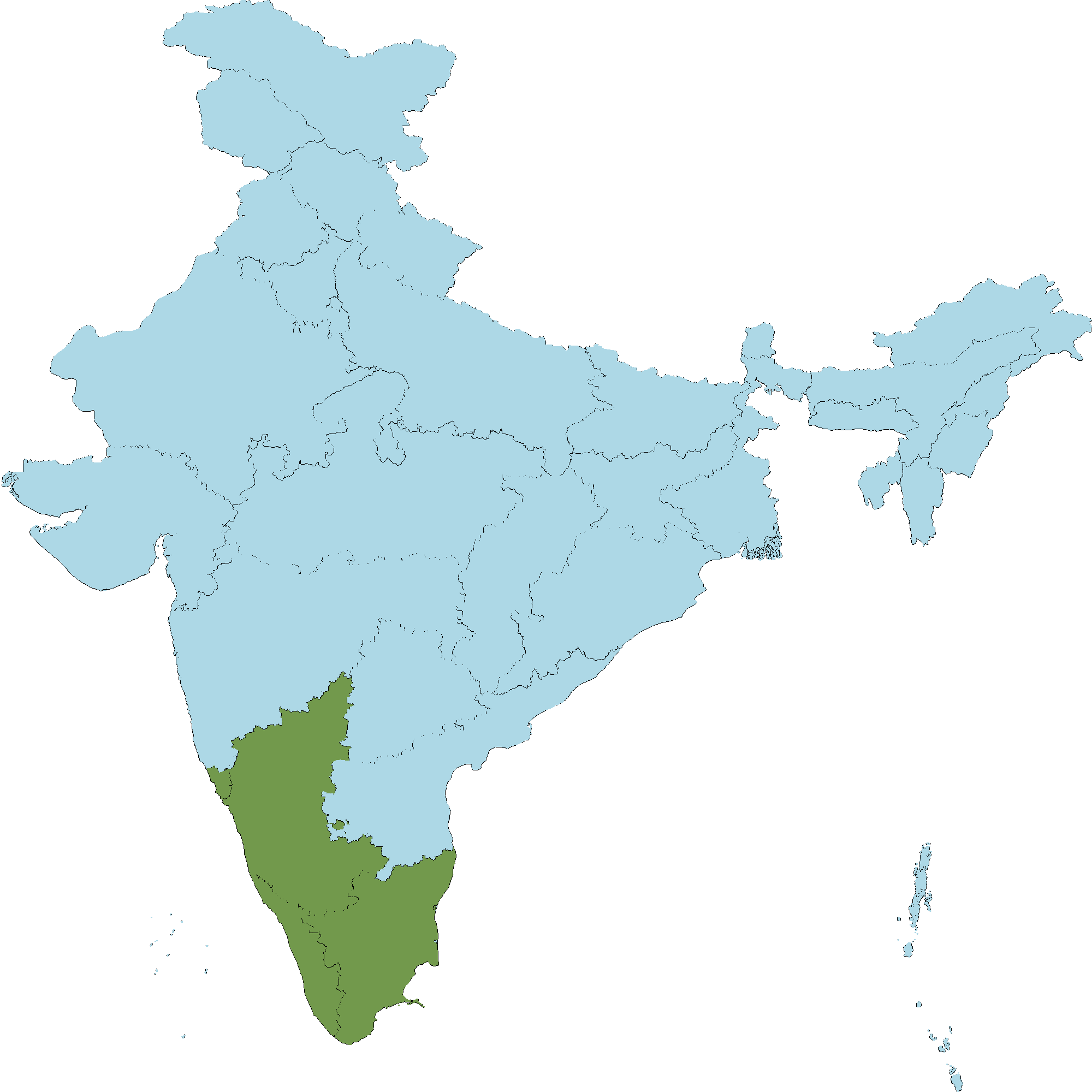 • Kerala : Kasaragod district, Kannur district, Wayanad district, Kozhikode district, Malappuram district, Palakkad district, Thrissur district, Idukki district, Kottayam district, Pathanamthitta district, Kollam district, Thiruvananthapuram district