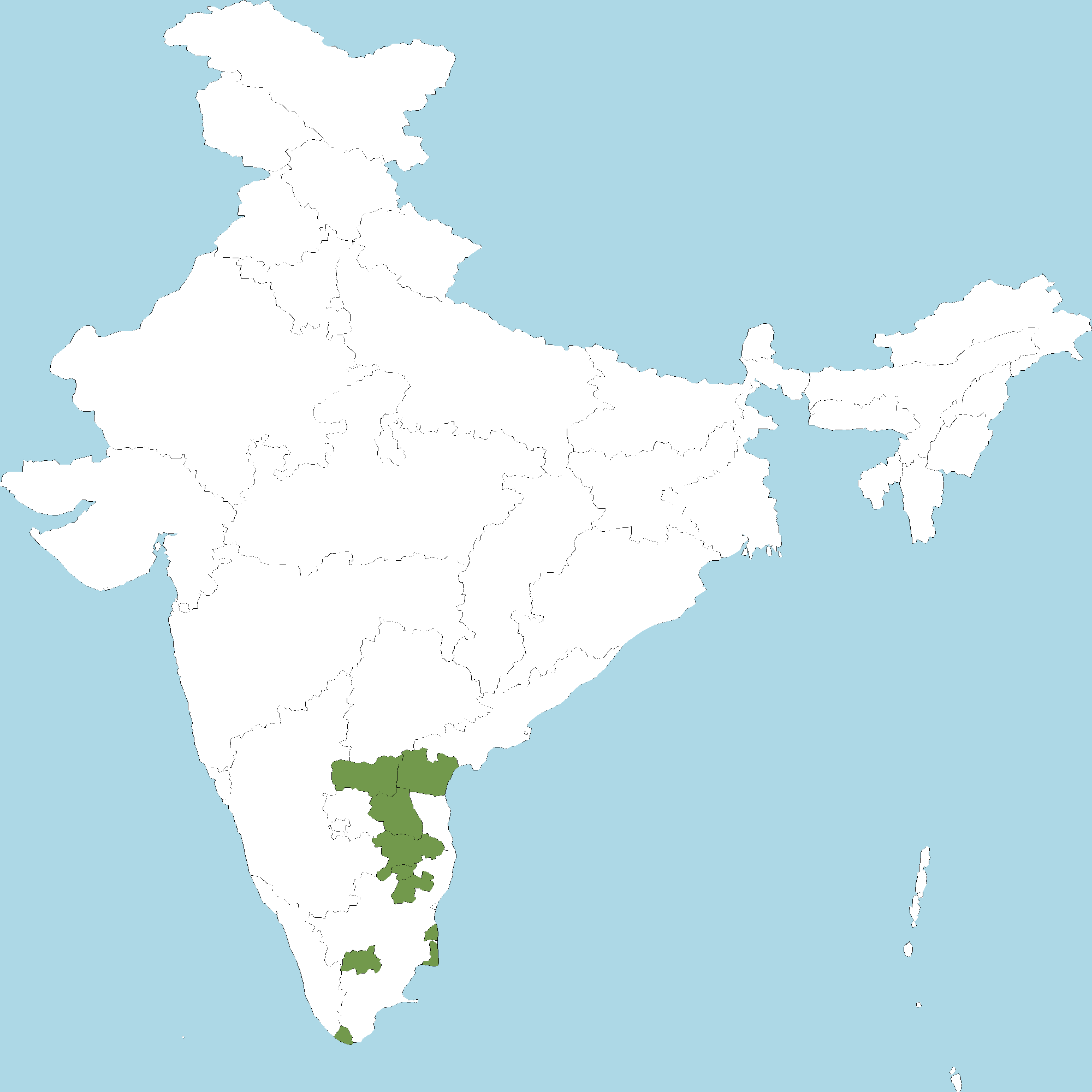 • Tamil Nadu : Sirumalai Hills (Dindigul district), Vellore district, Tiruvannamalai district, Kanyakumari district, Nagapattinam district