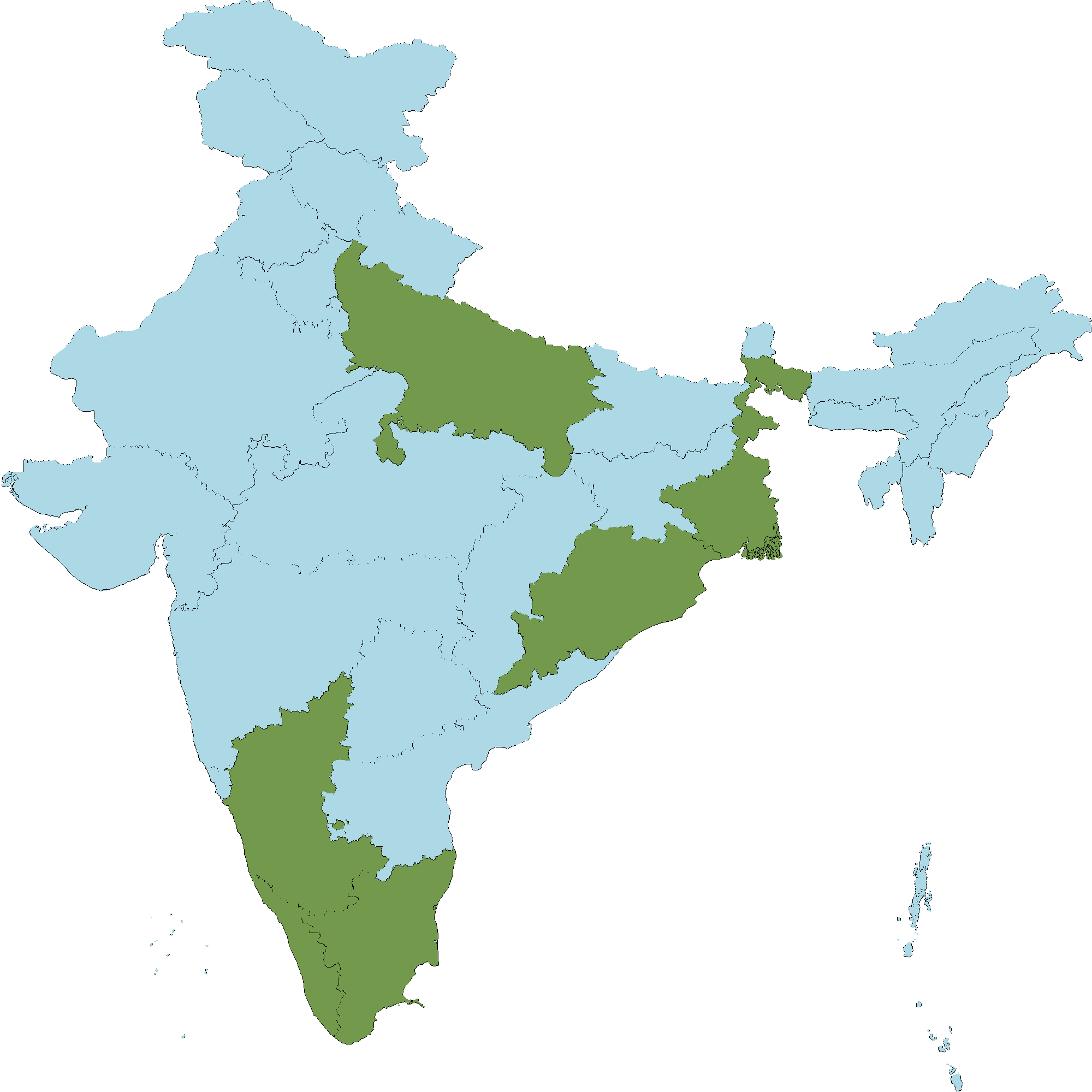• Tamil Nadu : Coimbatore district, Dindigul district, Namakkal district, The Nilgiri district, Kanyakumari district, Salem district, Theni district, Tirunelveli district