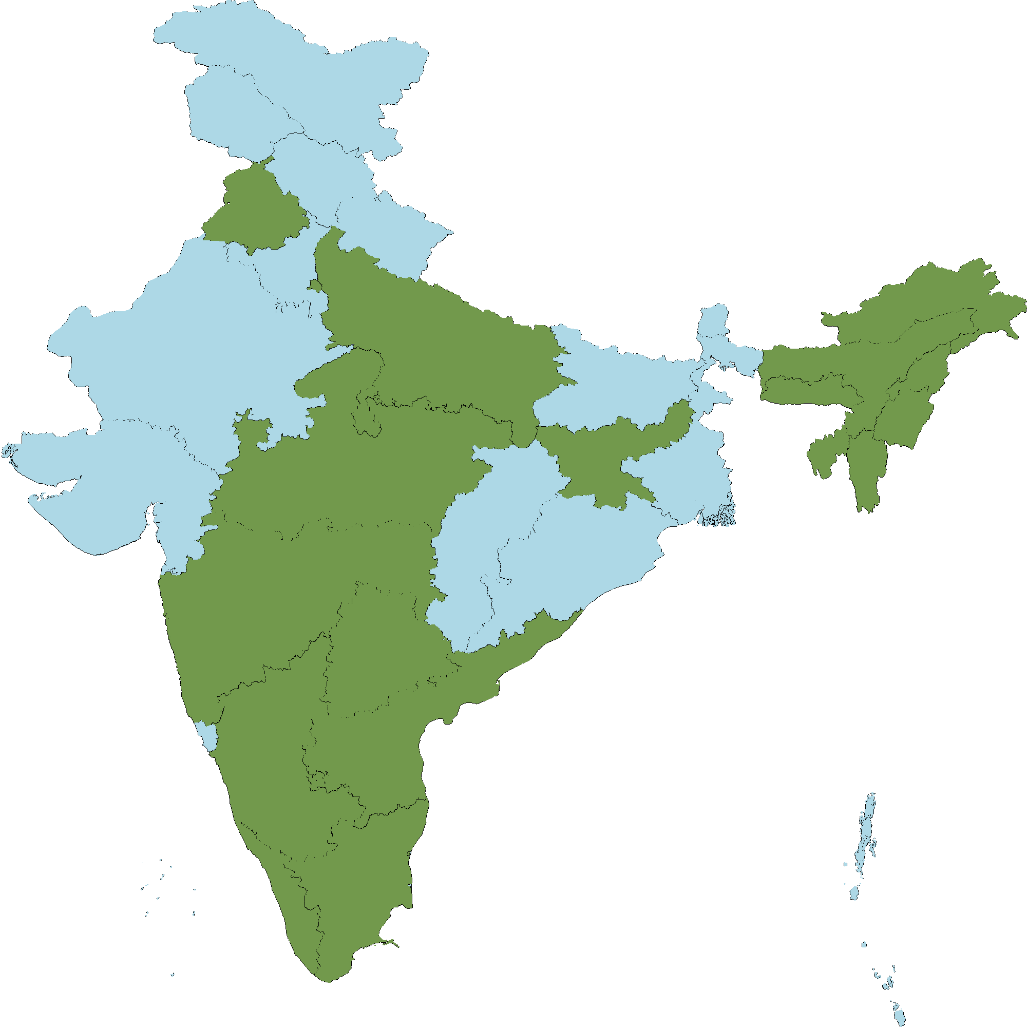 - Andhra Pradesh : Srikakulam district, Vishakapatnam district, Vizianagaram district, East Godavari district, West Godavari district, Krishna district, Guntur district, Prakasam district, Kurnool district, Nellore district, Kadapa district, Anantapur district, Chittoor district