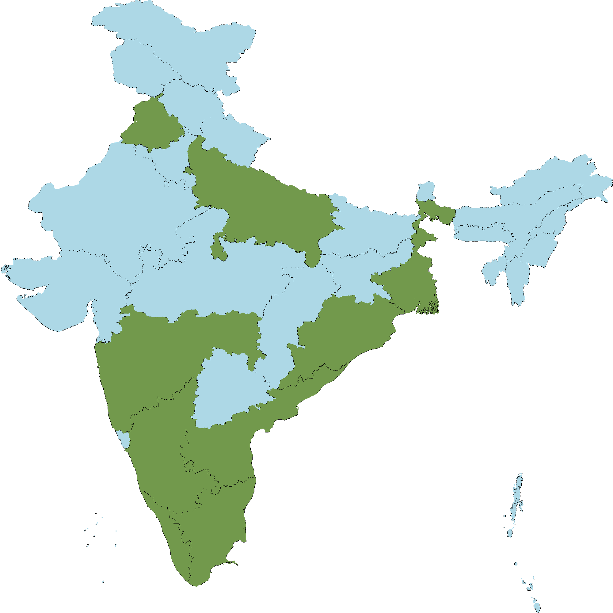 - Andhra Pradesh : Chittoor district, Guntur district, Anantapur district, Kadapa district, West Godavari district, Srikakulam district