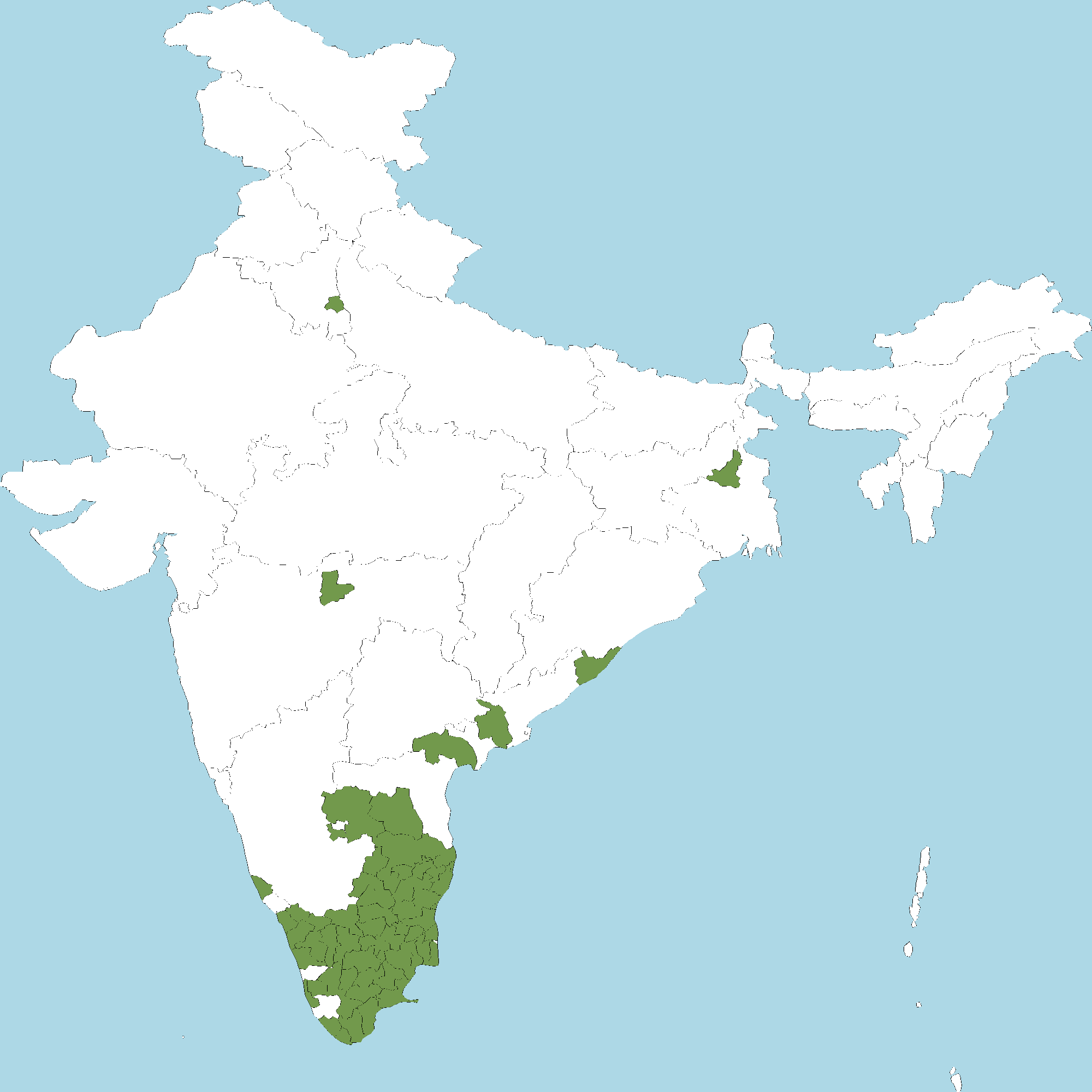 - Andhra Pradesh : Chittoor district, Guntur district, Anantapur district, Y.S.R. Kadapa district, West Godavari district, Srikakulam district