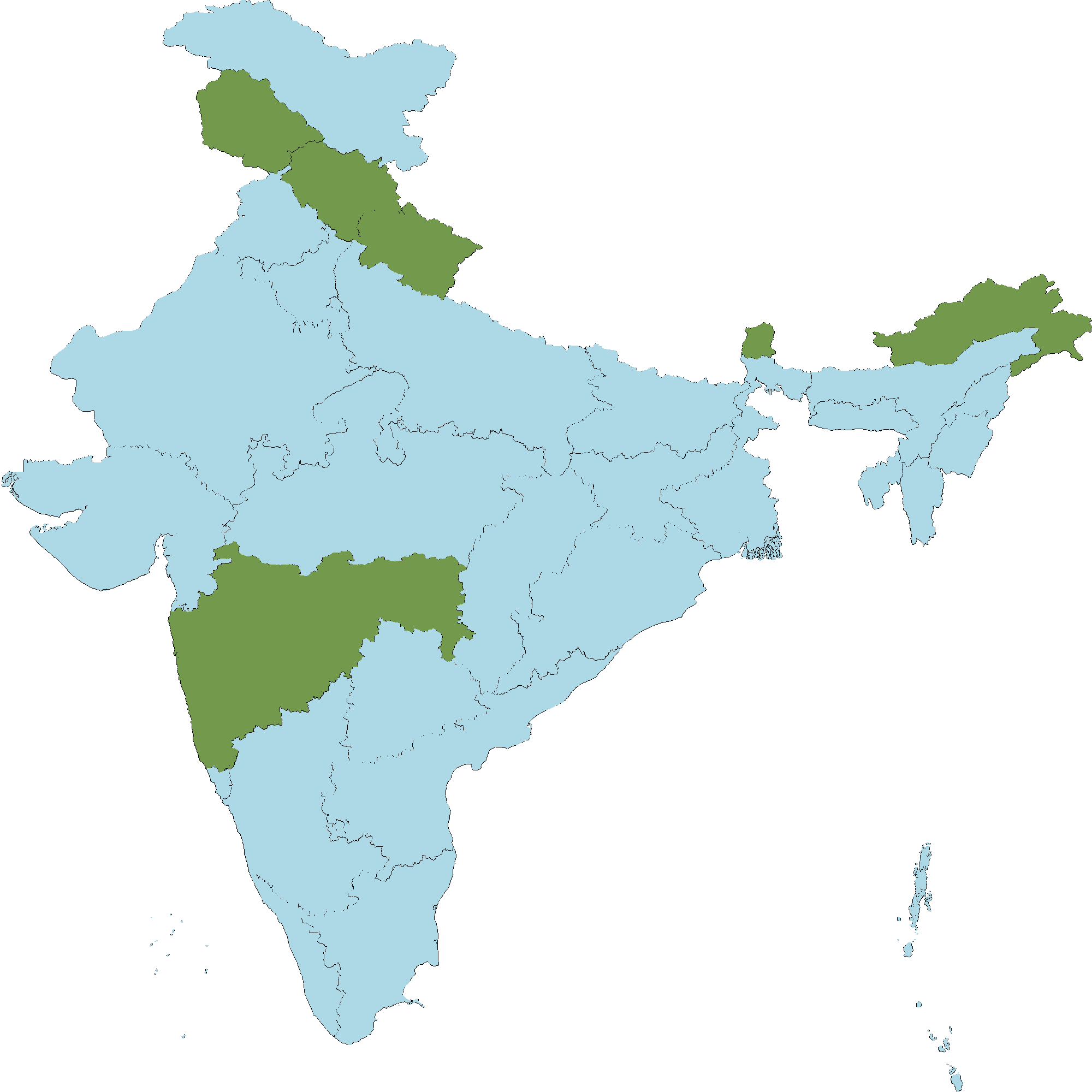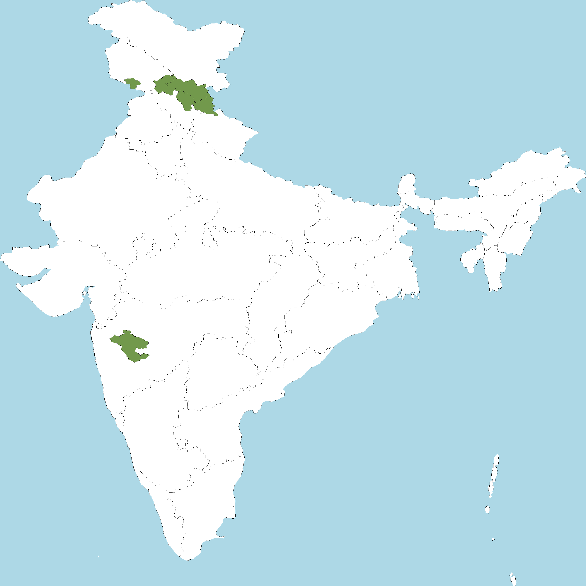 - Himachal Pradesh : Chamba district, Kinnaur district, Kullu district, Lahaul and Spiti district