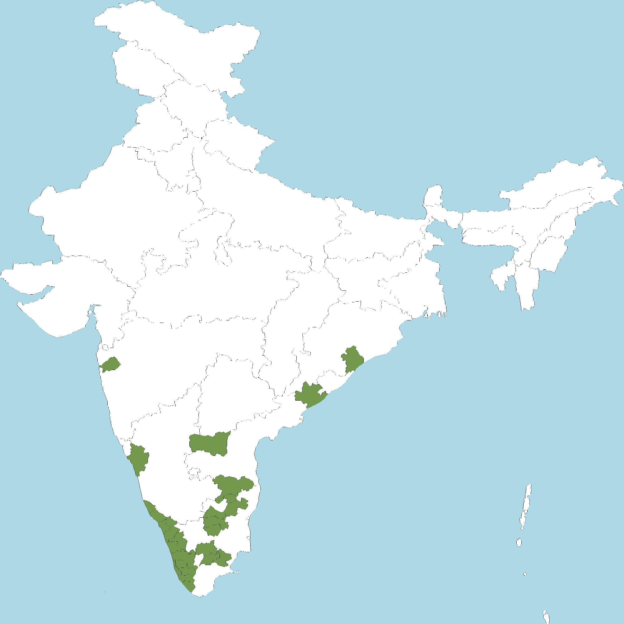 - Kerala : All districts of Kerala