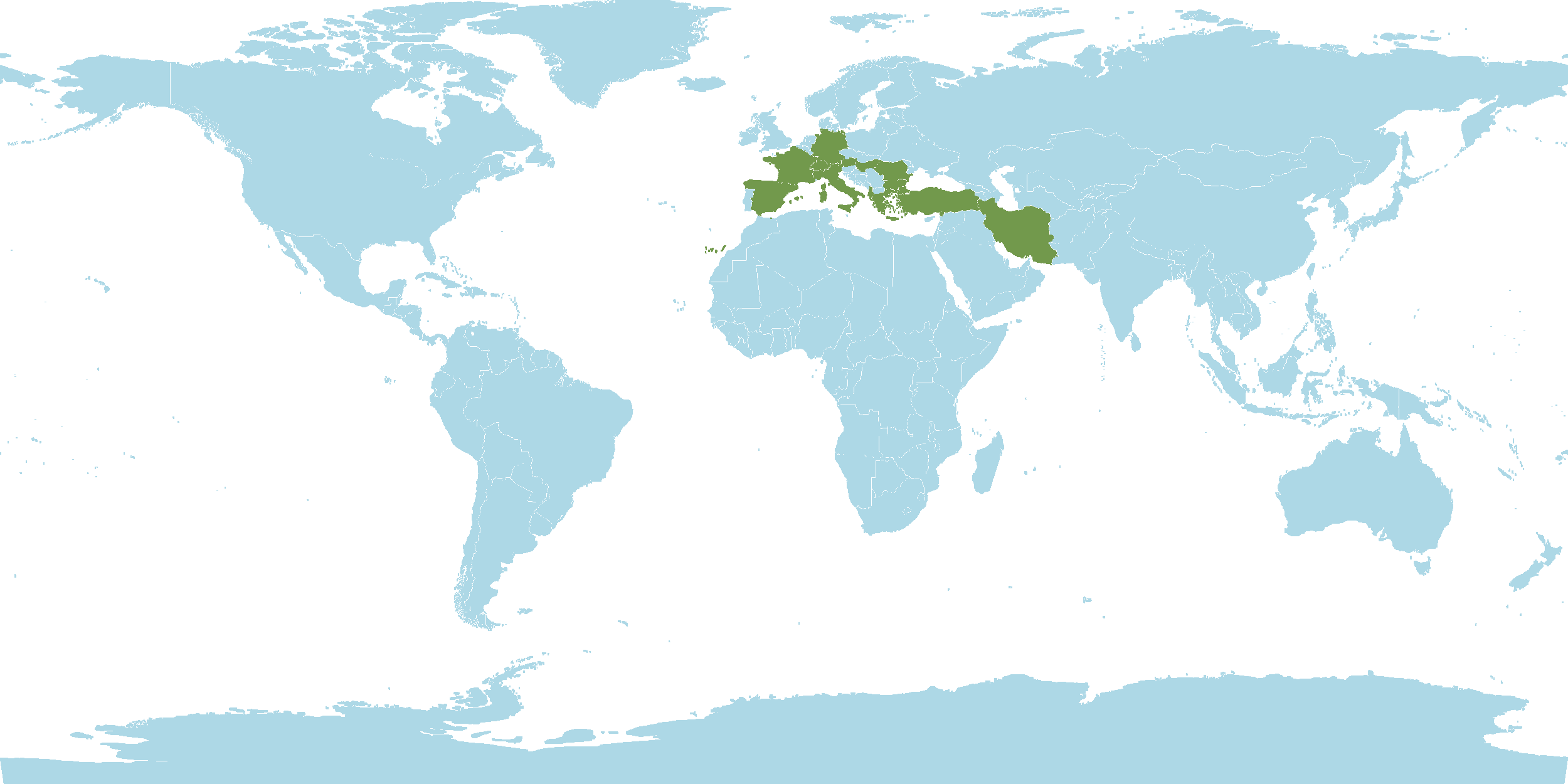 - Native : Albania, Austria, Bulgaria, Corse, Czechoslovakia, France, Germany, Greece, Hungary, Iran, Italy, North Caucasus, Romania, Spain, Switzerland, Transcaucasus, Turkey, Yugoslavia
