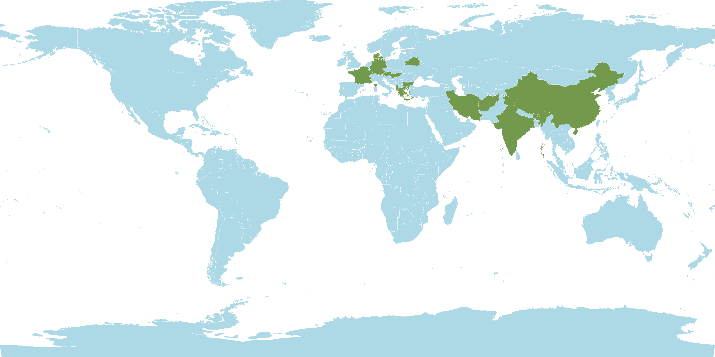- Native : Afghanistan, Albania, Austria, Baleares, Baltic States, Belarus, Belgium, Bhutan, Bulgaria, Central European Russia, China, Corse, Czechoslovakia, Denmark, East European Russia, France, Germany, Great Britain, Greece, Hungary, India, Inner Mongolia, Iran,