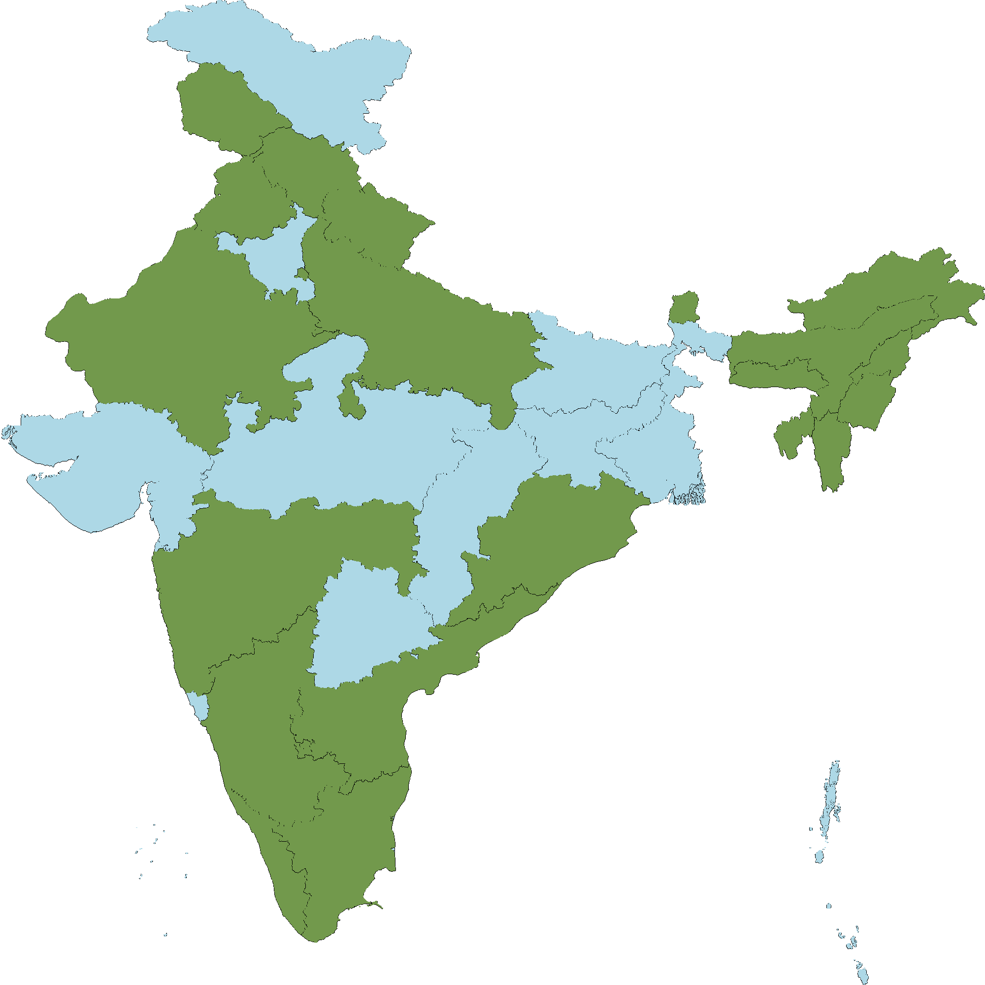 - Kerala : Wayanad district, Palakkad district, Idukki district, Kottayam district, Kollam district