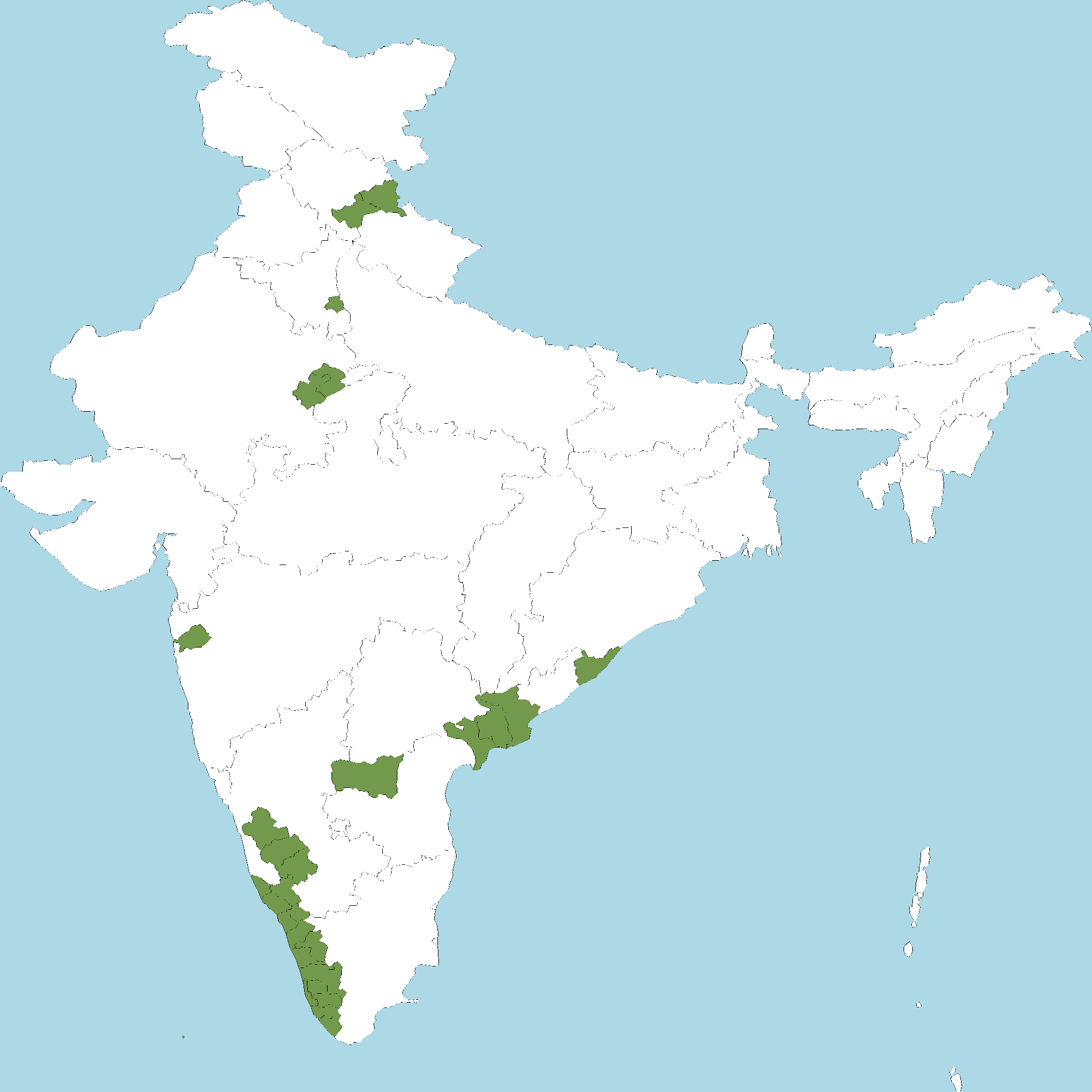 - Karnataka : Chikkamagaluru district, Hassan district, Kodagu (Coorg) district, Shivamogga district