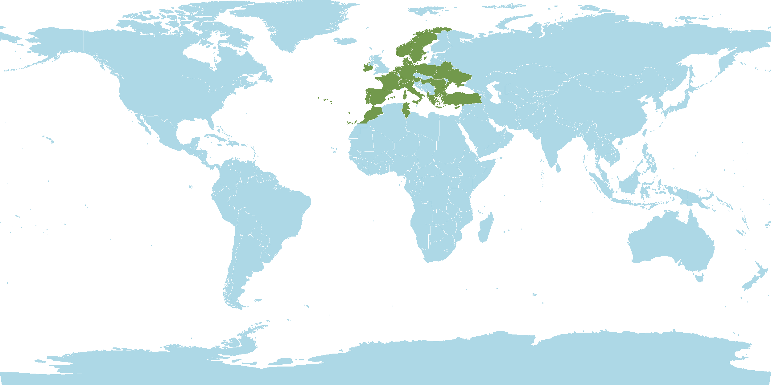- Native : Albania, Austria, Baltic States, Belarus, Belgium, Bulgaria, Canary Islands, Central European Russia, Corse, Cyprus, Czechoslovakia, Denmark, East European Russia, France, Germany, Great Britain, Greece, Hungary, Ireland, Italy, Krym, Madeira, Morocco, Ne