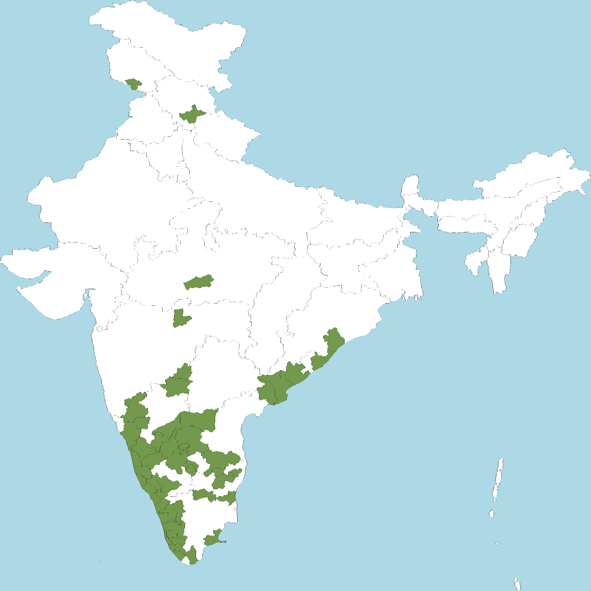 - Kerala : All districts of Kerala