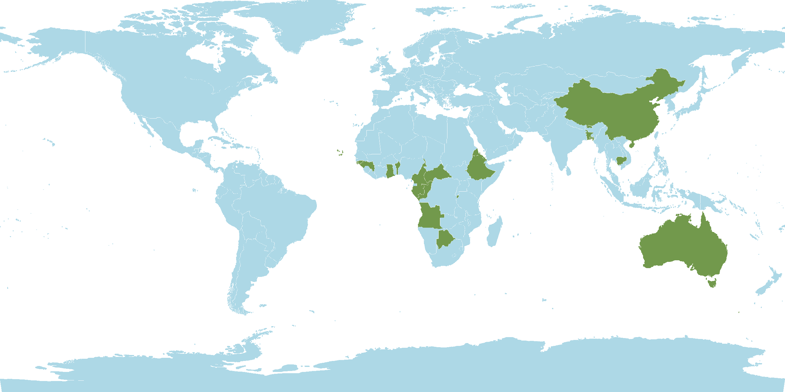 - Native : Andaman and Nicobar Islands, Angola, Australia, Bangladesh, Benin, Bhutan, Botswana, Burkina, Burundi, Cambodia, Cameroon, Cape Provinces, Cape Verde, Central African Republic, China, Congo, Eritrea, Ethiopia, Gabon, Gambia, Ghana, Guinea, Guinea-Bissau,