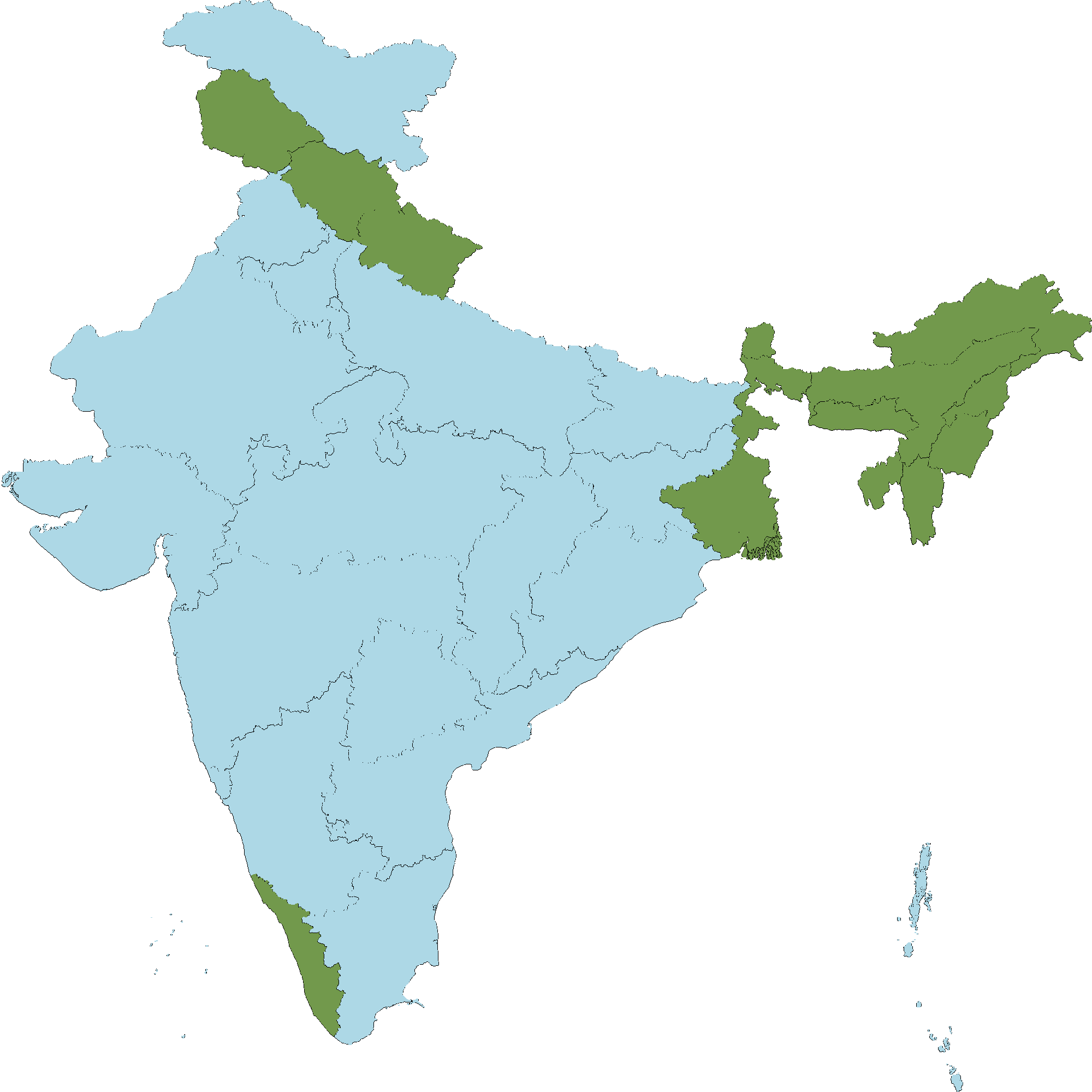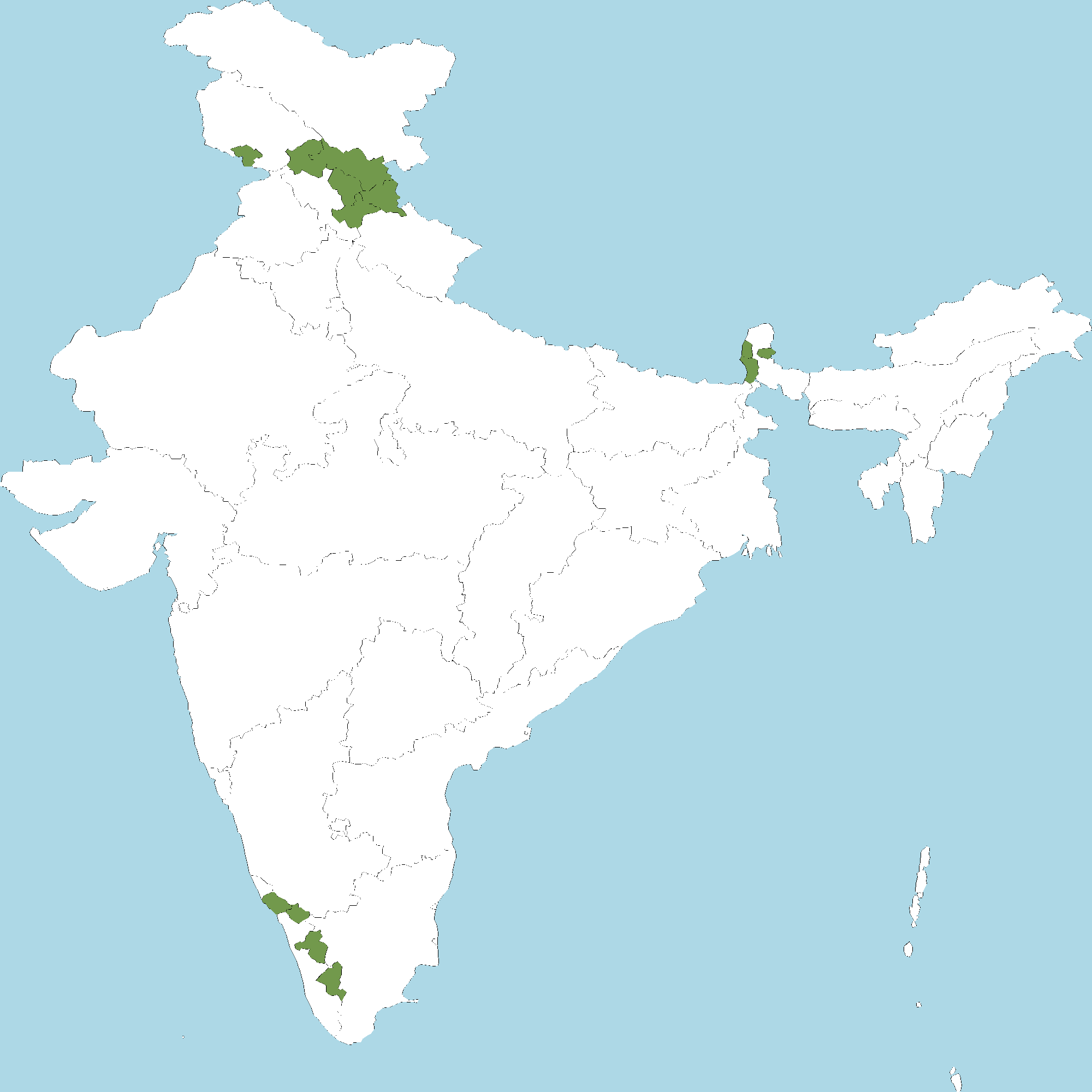 - Kerala : Kannur district, Wayanad district, Palakkad district, Idukki district
