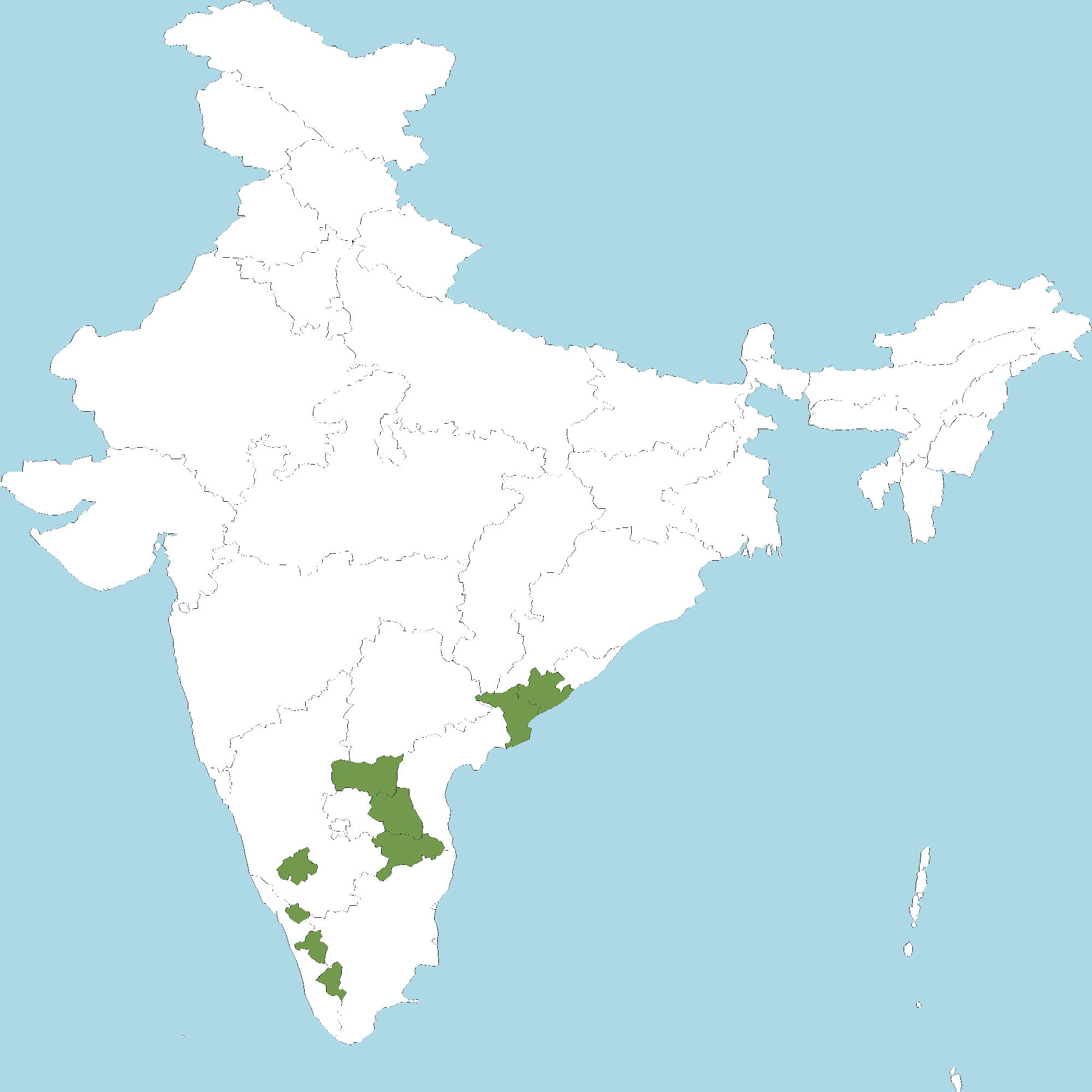 • Andhra Pradesh : Kurnool district, Y.S.R. Kadapa district, Chittoor district, East Godavari district, Visakhapatnam district